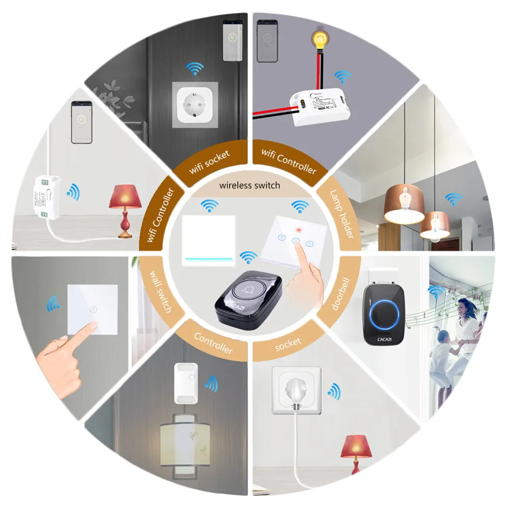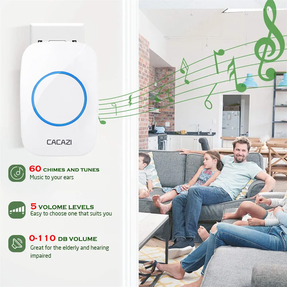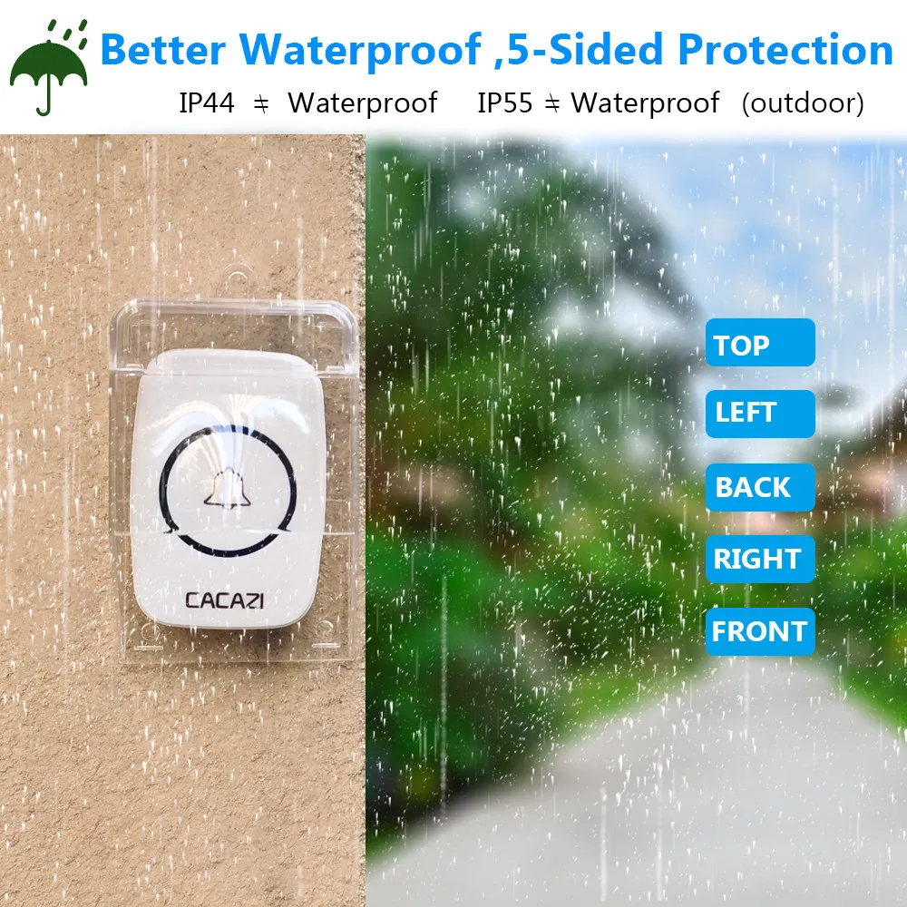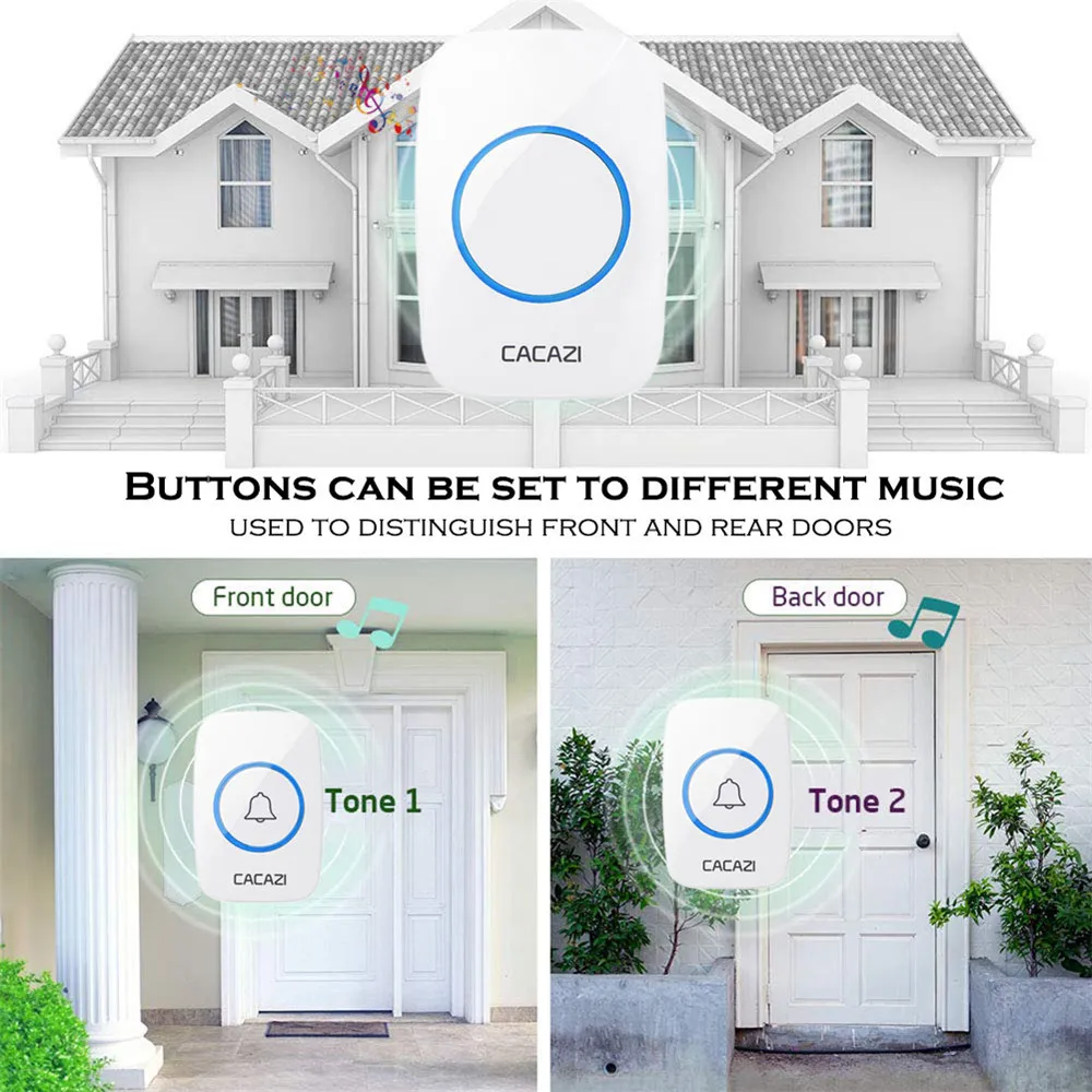 Беспроводной дверной звонок CACAZI, громкость до 300 дБ, дальность действия м, в комплекте штепсельная Вилка для Соединенного Королевства и США, Батарейная кнопка, 1234 ресивера