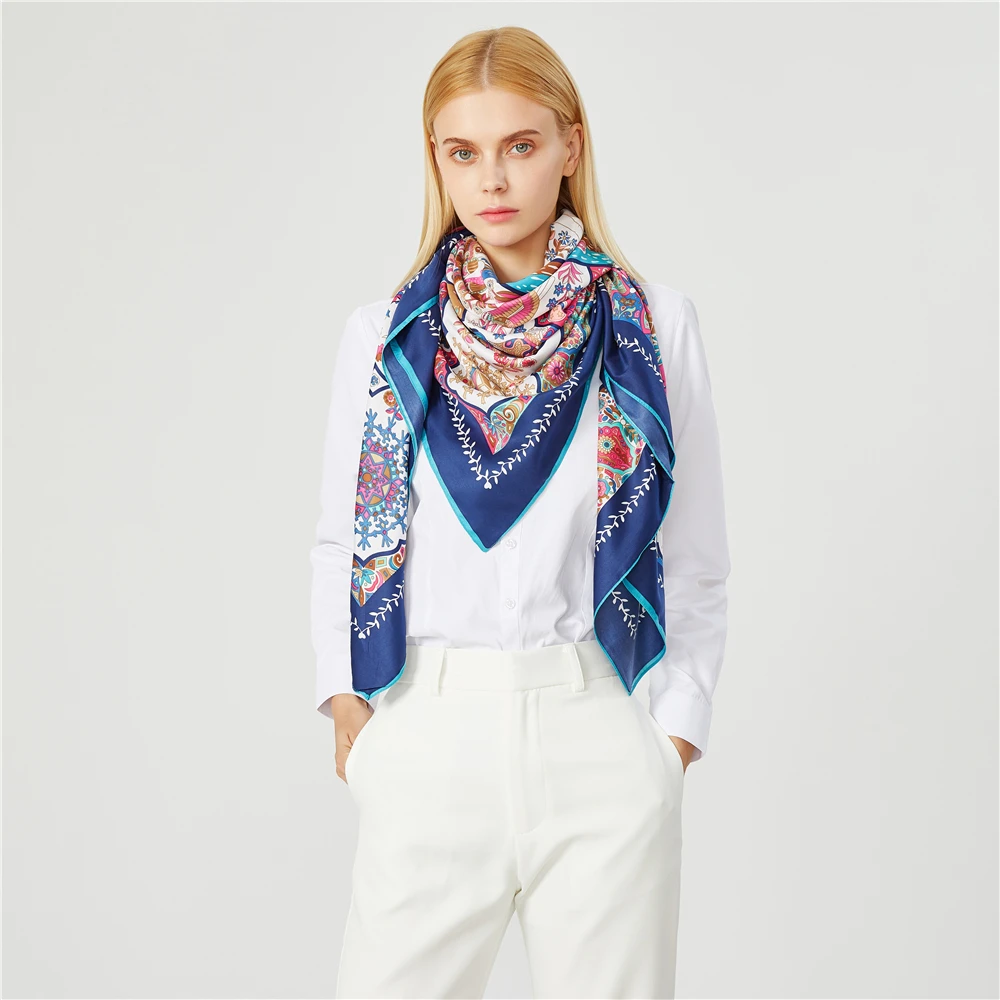130 см * 130 см роскошный брендовый шелковый шарф с цветочным принт...