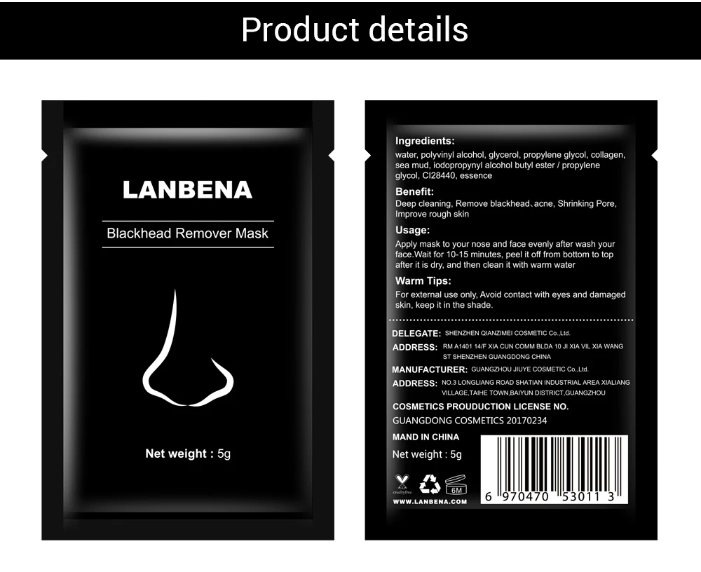 LANBENA черная маска для удаления черных точек, маски для носа от лечения акне, пилинг, полоска пор, маска для черных точек для лица, импорт