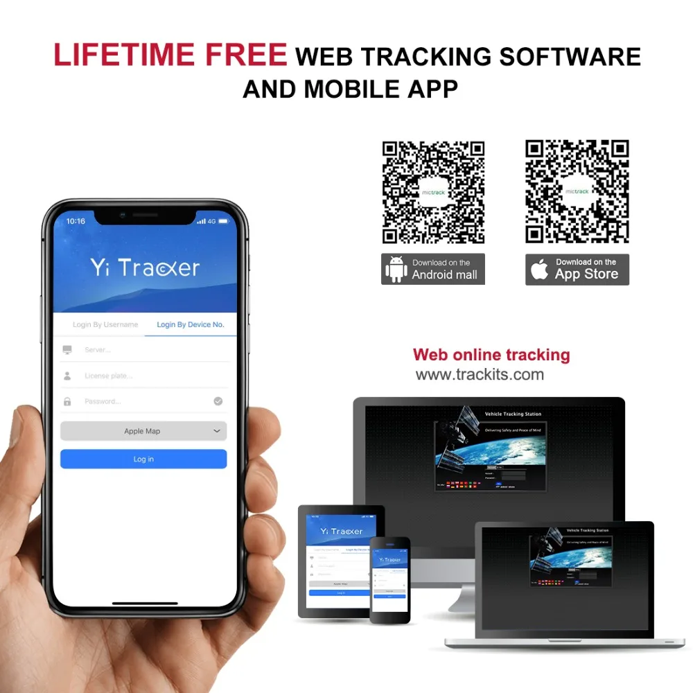 Найдите «Yi Tracker» в Google Play или iOS Store (или отсканируйте следующий qr-код) для загрузки мобильного приложения (не Yi tracker2) Выберите «Логин по номеру устройства; Входной сервер www.trackits.com Введите ID и пароль вашего устройства (по умолчанию 123456) для входа в систему.