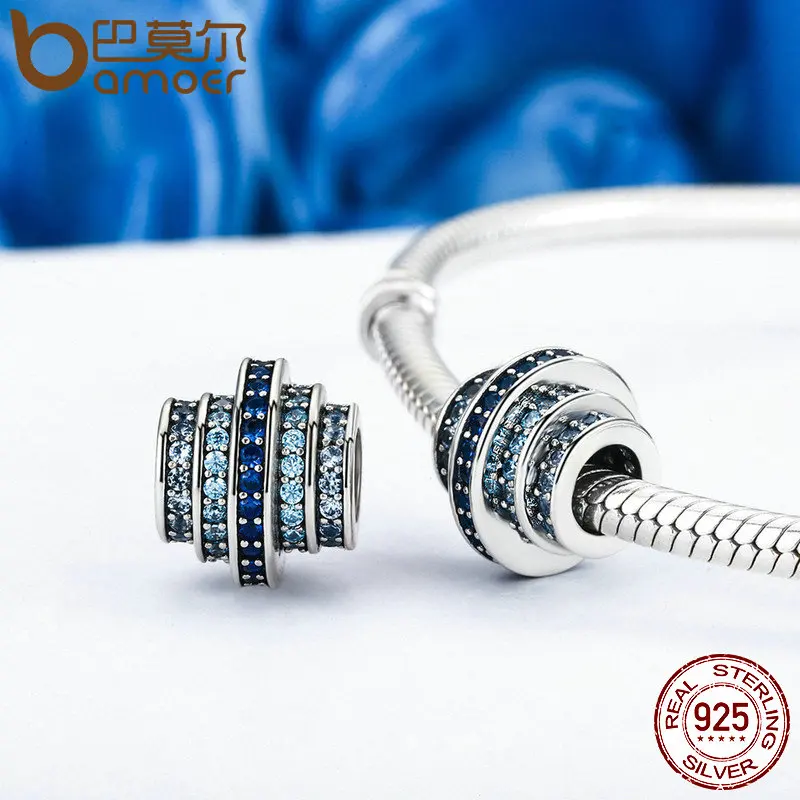 BAMOER подлинное серебро 925 пробы постепенное изменение круглое колесо голубая Мелодия ясно шармы с фианитами стразами fit Браслеты Ювелирные изделия SCC129