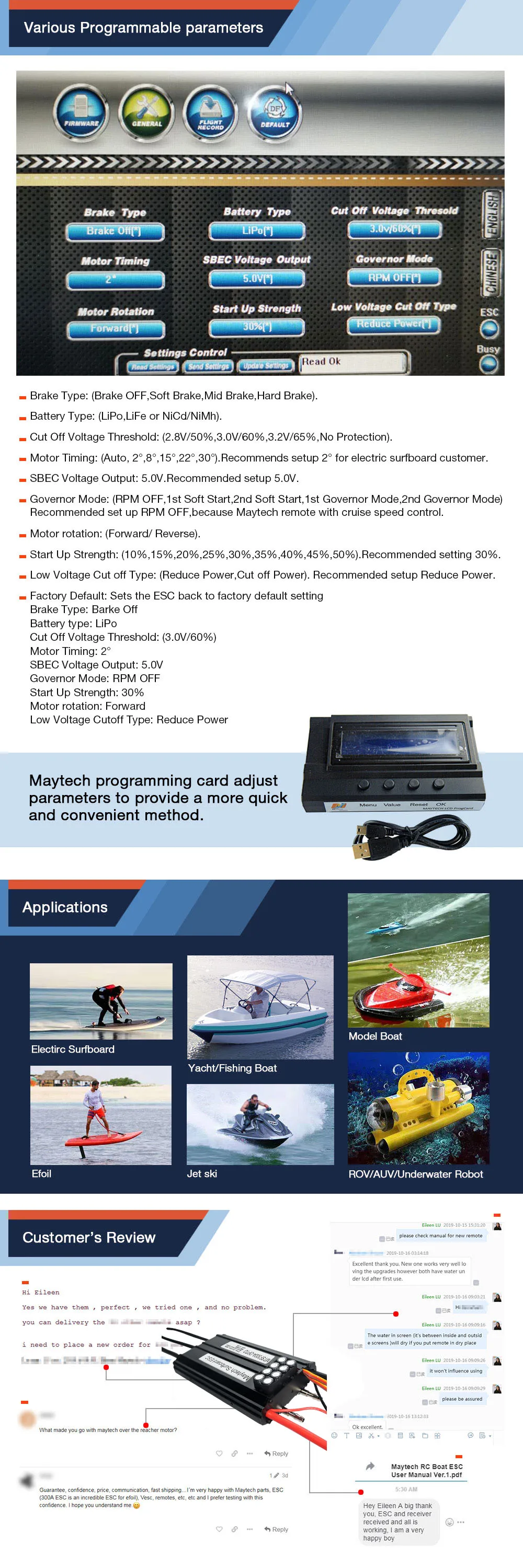 Эта прошивка по умолчанию ESC совместима с двигателем Maytech и ESC, если вам нужно совместима с другим пультом дистанционного управления, сначала свяжитесь с нами.