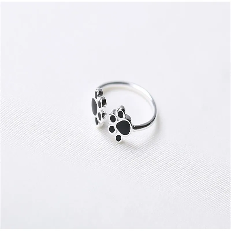 Кольцо женское с черной эмалью, с принтом в виде кошачьей лапы