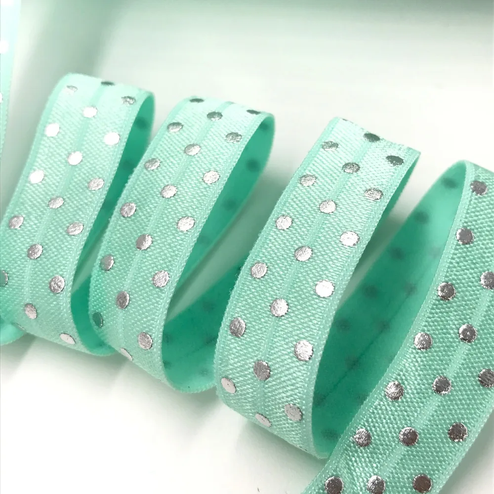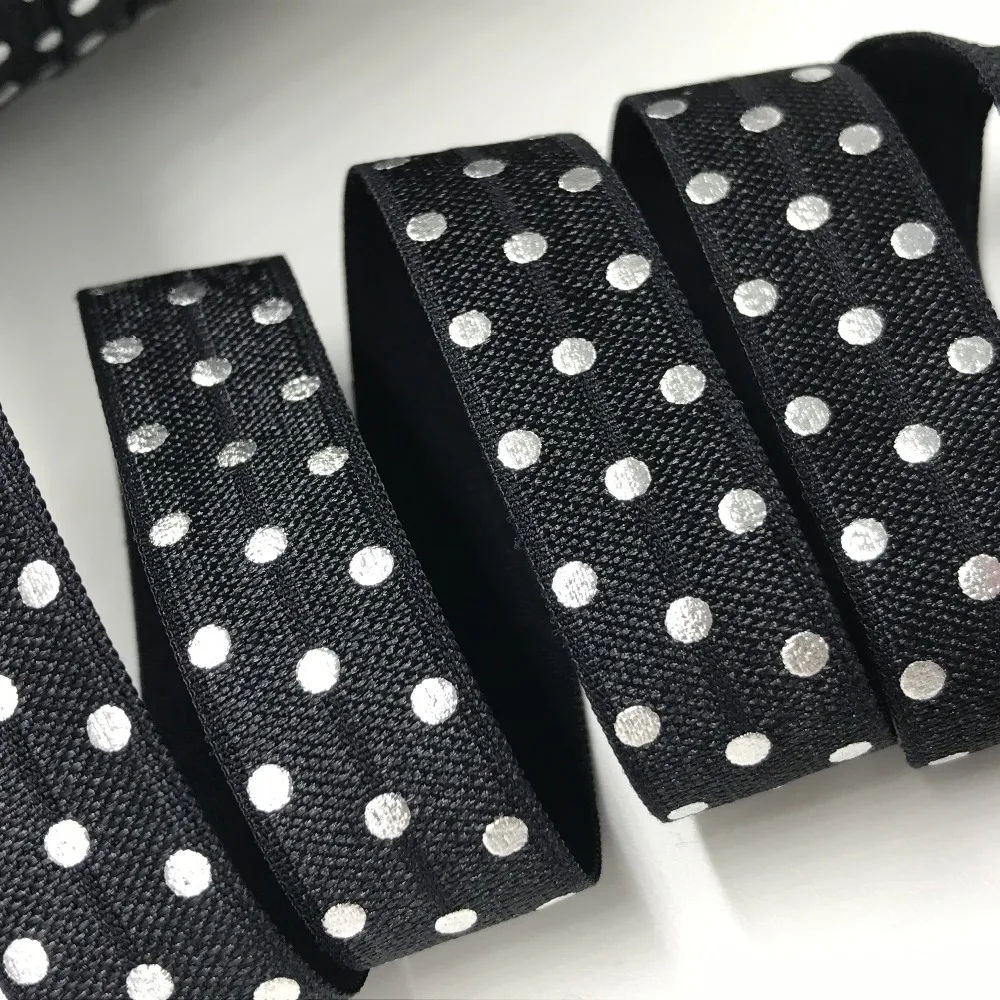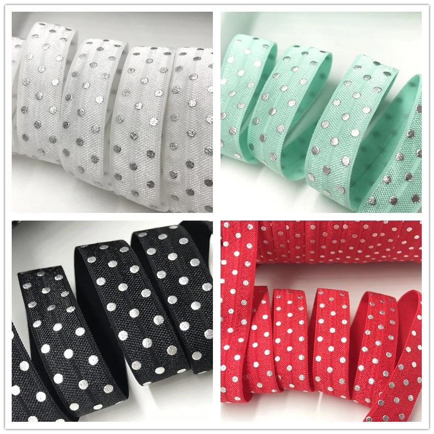 Хорошее качество, серебряная фольга, узор в горошек, складывается, эластичная, 5/8 "враг, 10 ярдов/партия, белая, Аква, черная, красная лента для волос, аксессуары