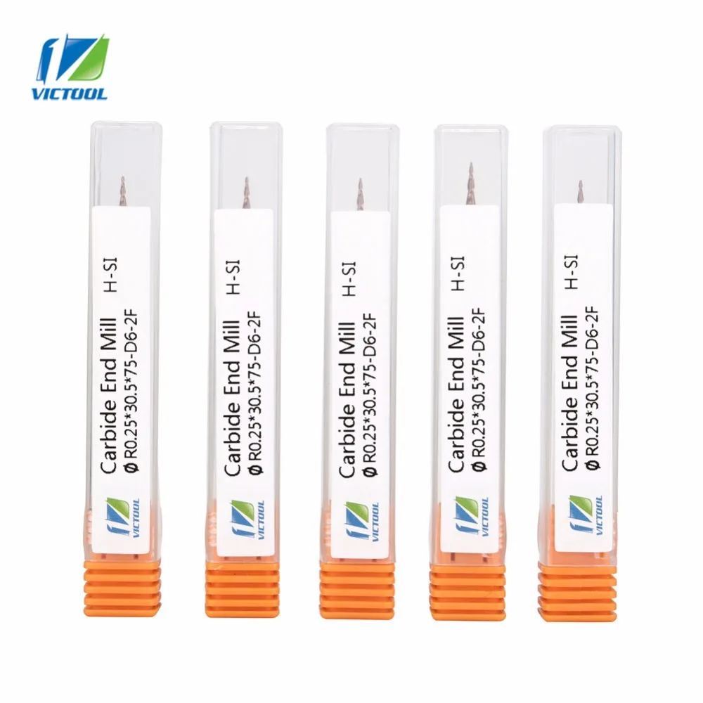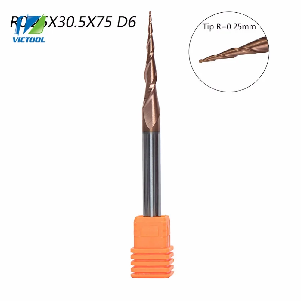Концевые фрезы R0.25 * D6 * 30,5 * 75L * 2F, твердосплавные, 6 мм, сферический нож, конические концевые фрезы, конические фрезы для дерева, металла, фреза, 5 шт.лот
