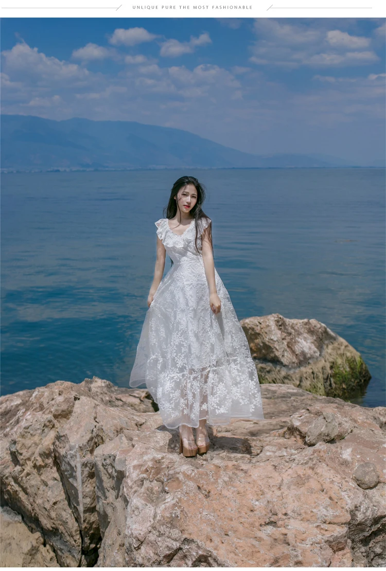 2020 Элегантное летнее сексуальное платье с открытыми плечами платье без рукавов и бретелек женское белое кружевное платье с цветочным принтом пляжное праздничное платье