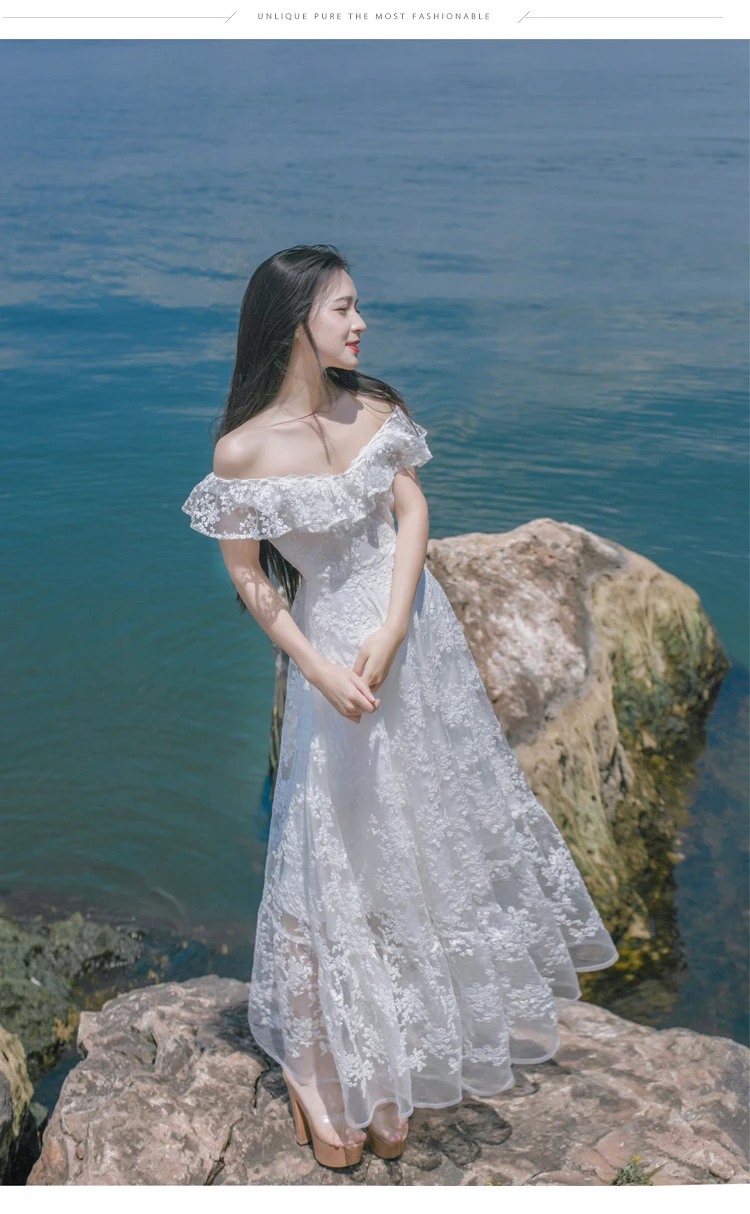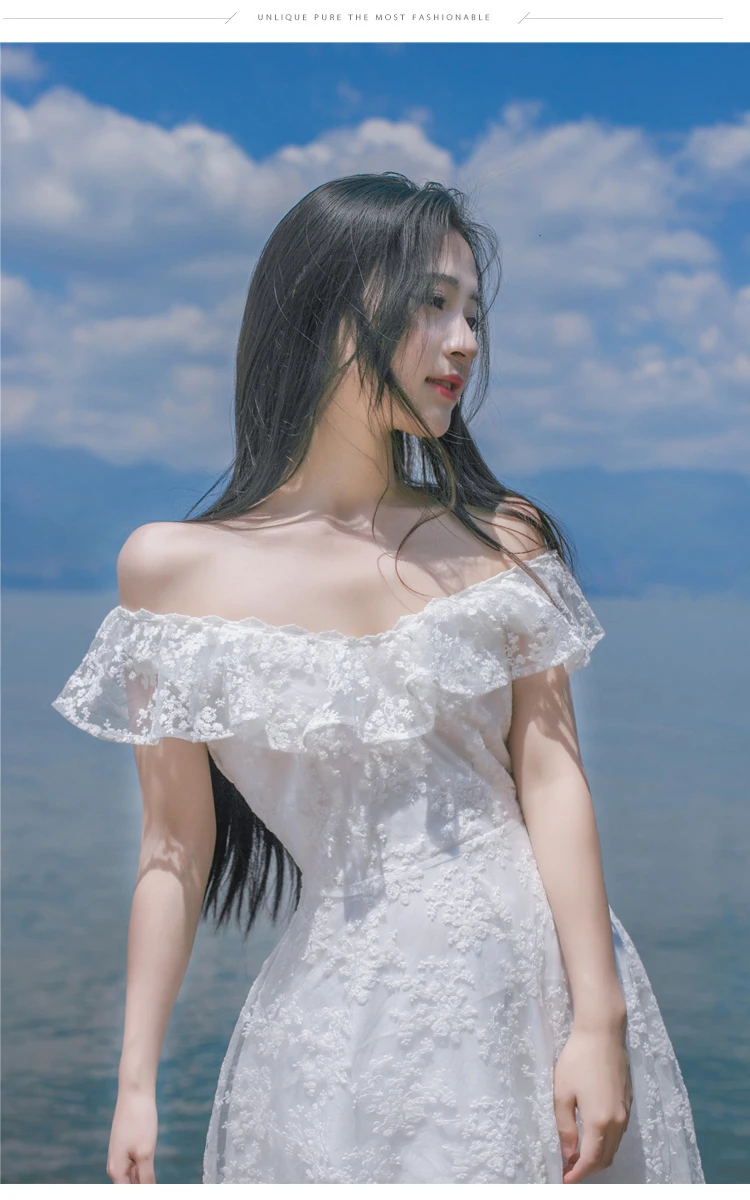 Женское кружевное платье, Элегантное летнее белое вечерние ное платье с открытыми плечами, 2020