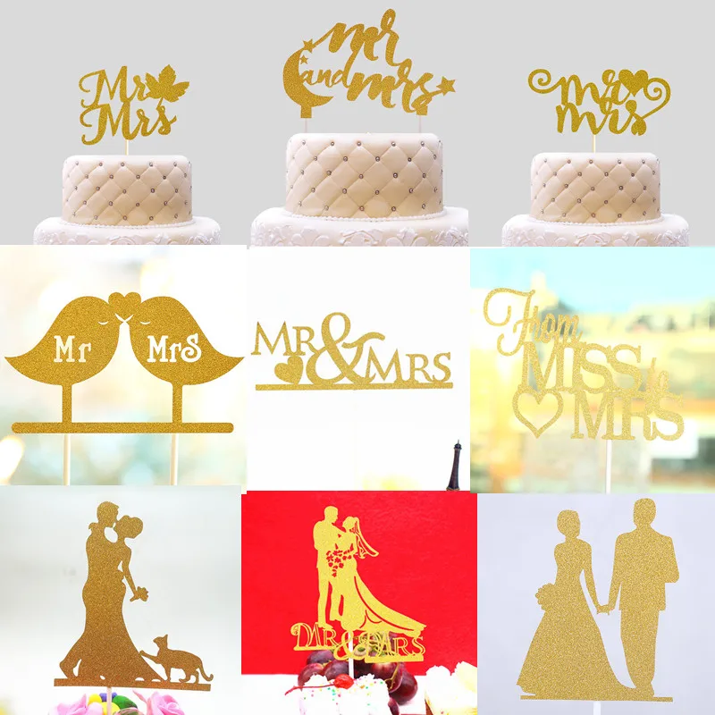 Блестящий Топпер для торта невесты, жениха, Mr Mrs, полые топперы д...