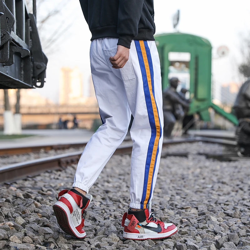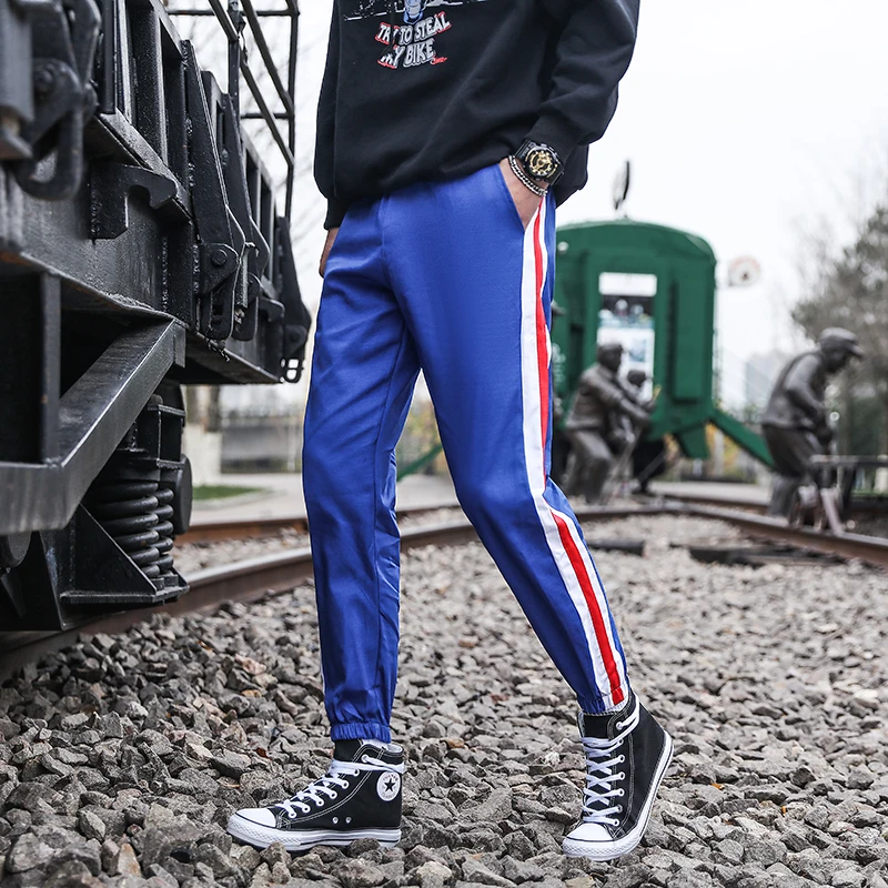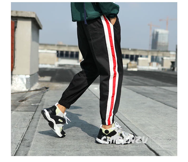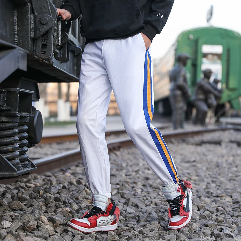 Повседневные мужские хлопковые штаны 2020, украшенные лентой, штаны для активных тренировок, эластичные шаровары, облегающие штаны высокого качества в стиле хип-хоп, размеры от 2 до 8 лет