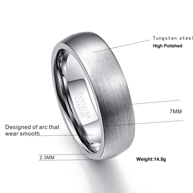 Фирменное наименование: Nuncad Металлический брелок, вольфрамная сталь Металлический штамп из карбида вольфрама Ширина 7 мм Номер модели: T001R Кольцо Размеры 7, 8, 9, 10, 11, 12 лет Weigt около 14,5 г Качество изготовления, классический, весомый и прочный, отличная устойчивость к царапинам Великолепное мастерство на матовой поверхности и высокий лак Гладкий innerface, принесет вам элегантность и комфорт.