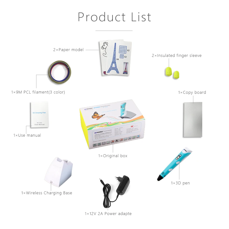 Беспроводная зарядка 3D Ручка 100% оригинал RP-200B, светодиодный экран 3D печать ручка креативный подарок игрушка для детей дизайн рисунок