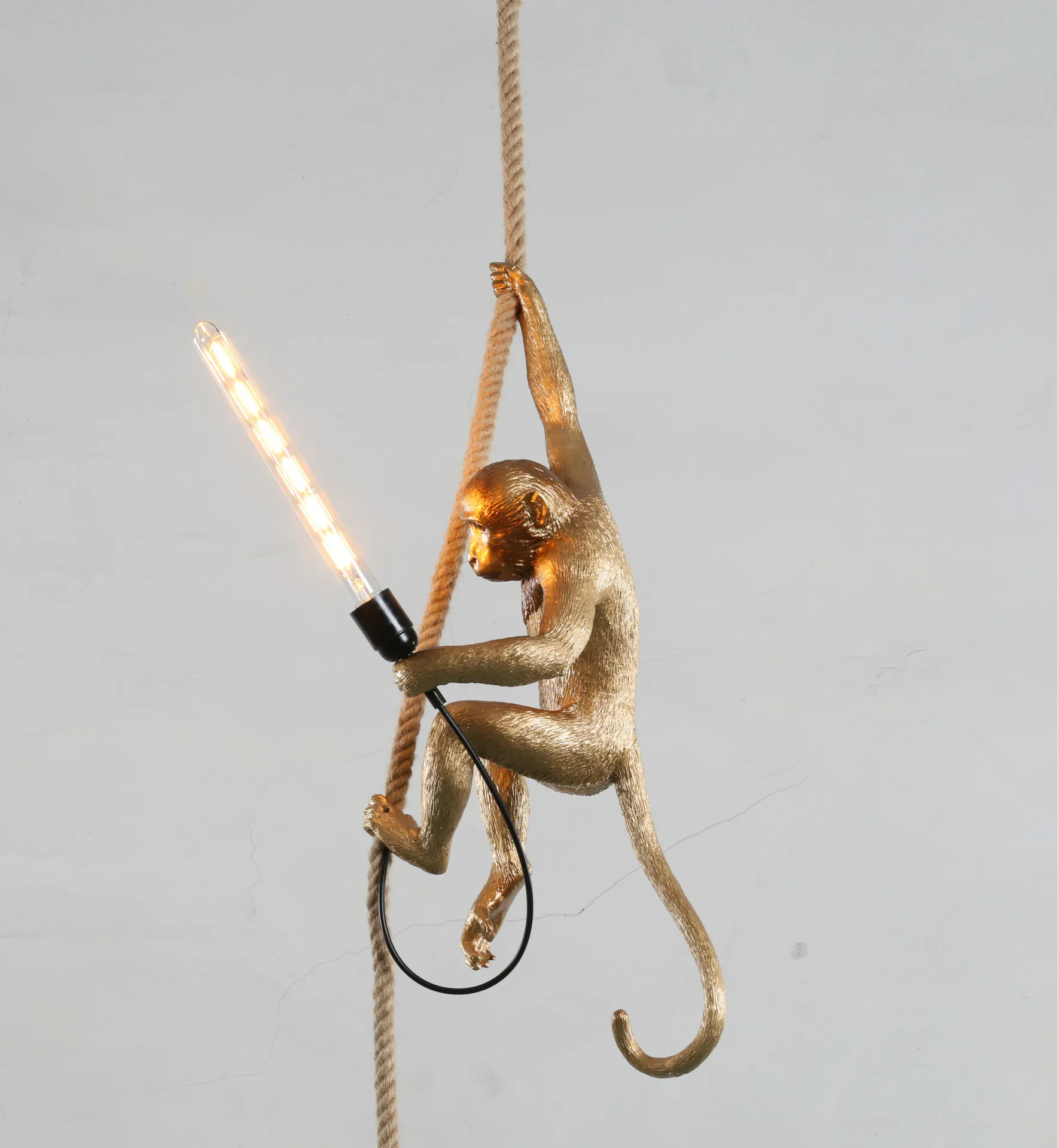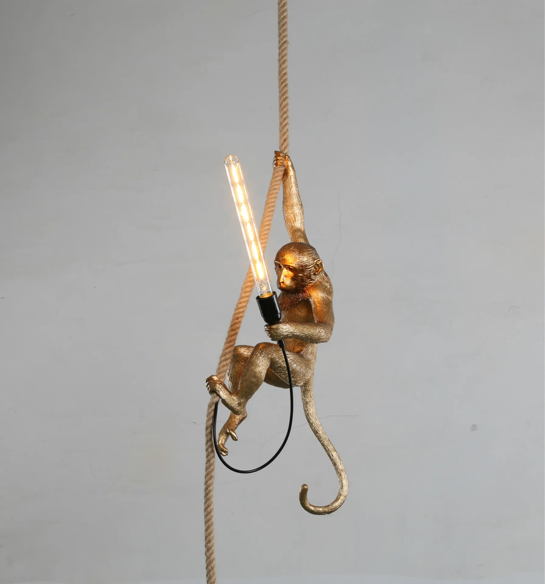 Современный полимерный винтажный подвесной светильник обезьяна в стиле лофт из пеньковой веревки для дома столовой бара Кафе Ретро подвесной светильник