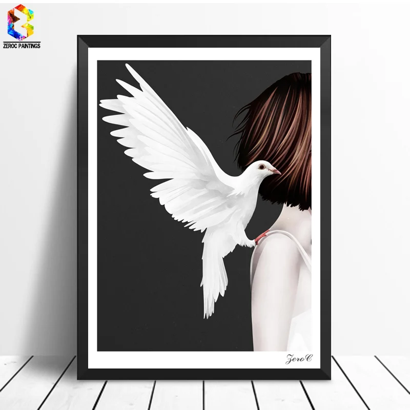 Скандинавский черно-белый постер, холст с рисунком совы, перо, наст...