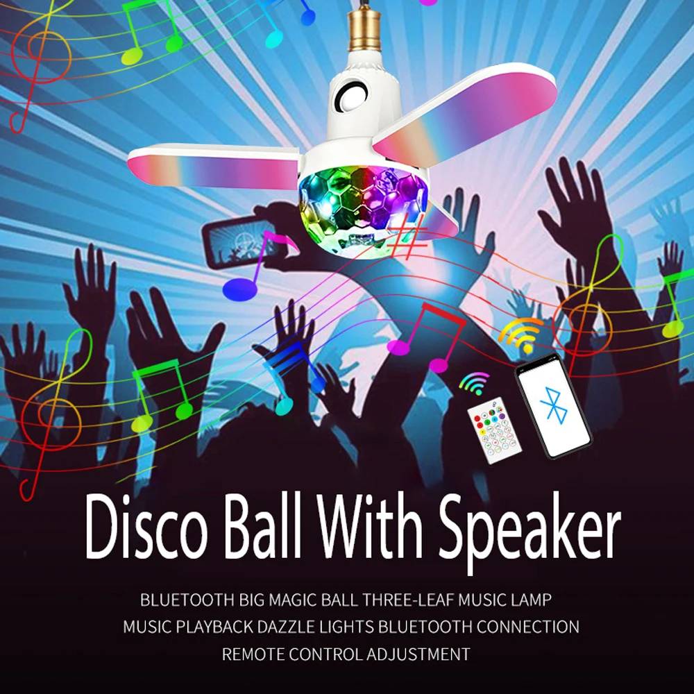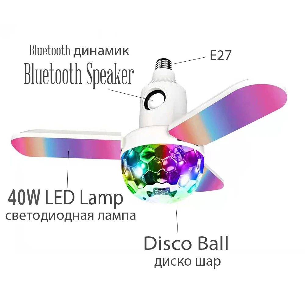 Светодиодная лампа E27 40 Вт для дискотеки, RGB волшебный шар со звуковой коробкой, Bluetooth-динамик, музыкальная вечеринка