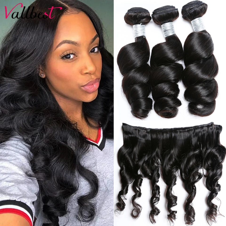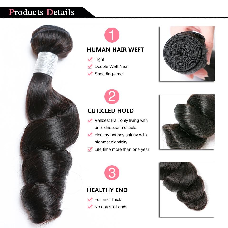 Бразильские волосы Vallbest, свободные волнистые человеческие пучки, наращивание волос # 1B, натуральные черные #1, натуральные волосы Реми черного цвета