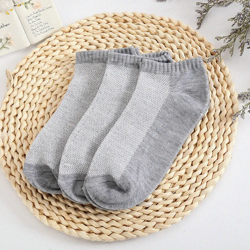 5 пар/лот; Мужские носки; Модные классические высококачественные повседневные хлопковые носки до щиколотки; Сезон лето-осень; 3 однотонных цвета; Дышащие носки
