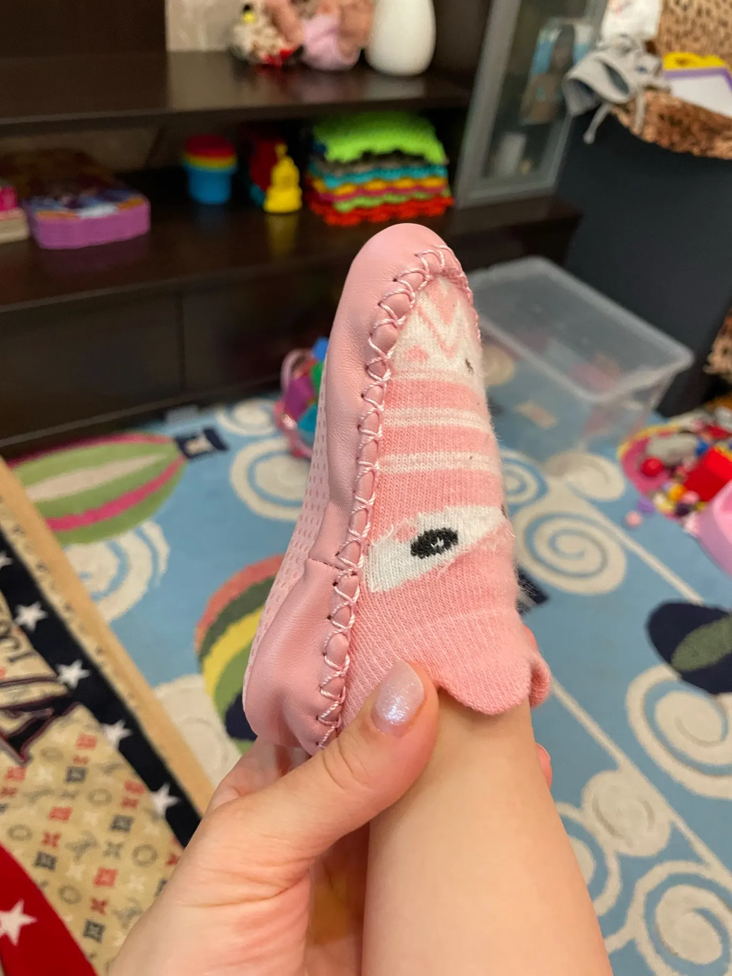 Спасибо продавцу. Тапочки хорошие, прошитв хорошо, без запаха. Ребенку годик, взяла побольше вдруг маломерят, свободны, есть еще место. Приобретённый размер 13-18 мес.