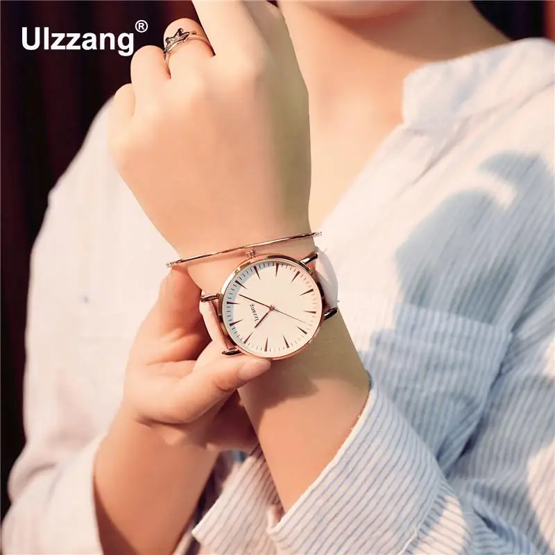 Модные женские кварцевые часы Ulta, тонкие кожаные повседневные часы для отдыха