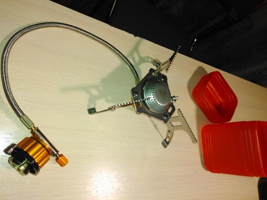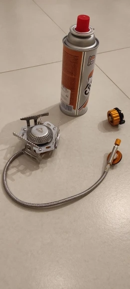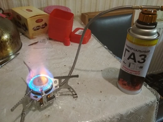 Отличная вещь. Купил с переходником на цанговый балон. Я не турист, но на рыбалку, на несколько дней выезжаю, надоело таскать дрова, а потом чистить посуду. Из коробки работает отлично, загорается от пьезы с первого раза, лёгкая, компактная, горит ровно.
