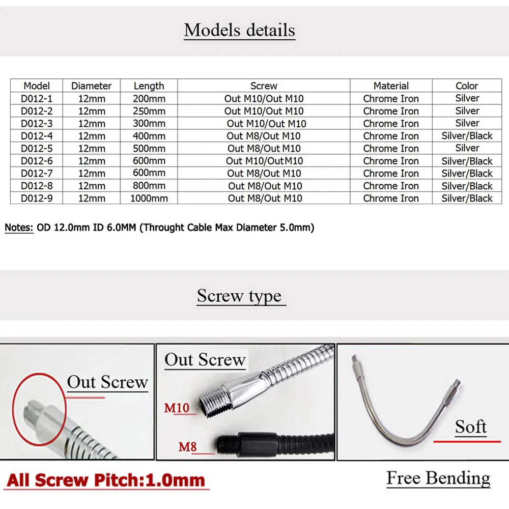 Гибкий светодиодный светильник Dia12mm L:20 30 50 60 80 100 см, гибкий держатель для шланга, мягкая металлическая трубка, Настольнаянастольная трубка