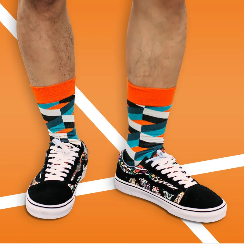 COCOTEKK брендовые оригинальные мужские модные трендовые носки в стиле хип-хоп хлопчатобумажные забавные носки с геометрическим узором Разноцветные носки в полоску для свадьбы