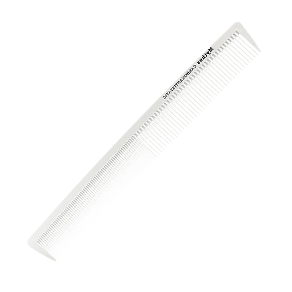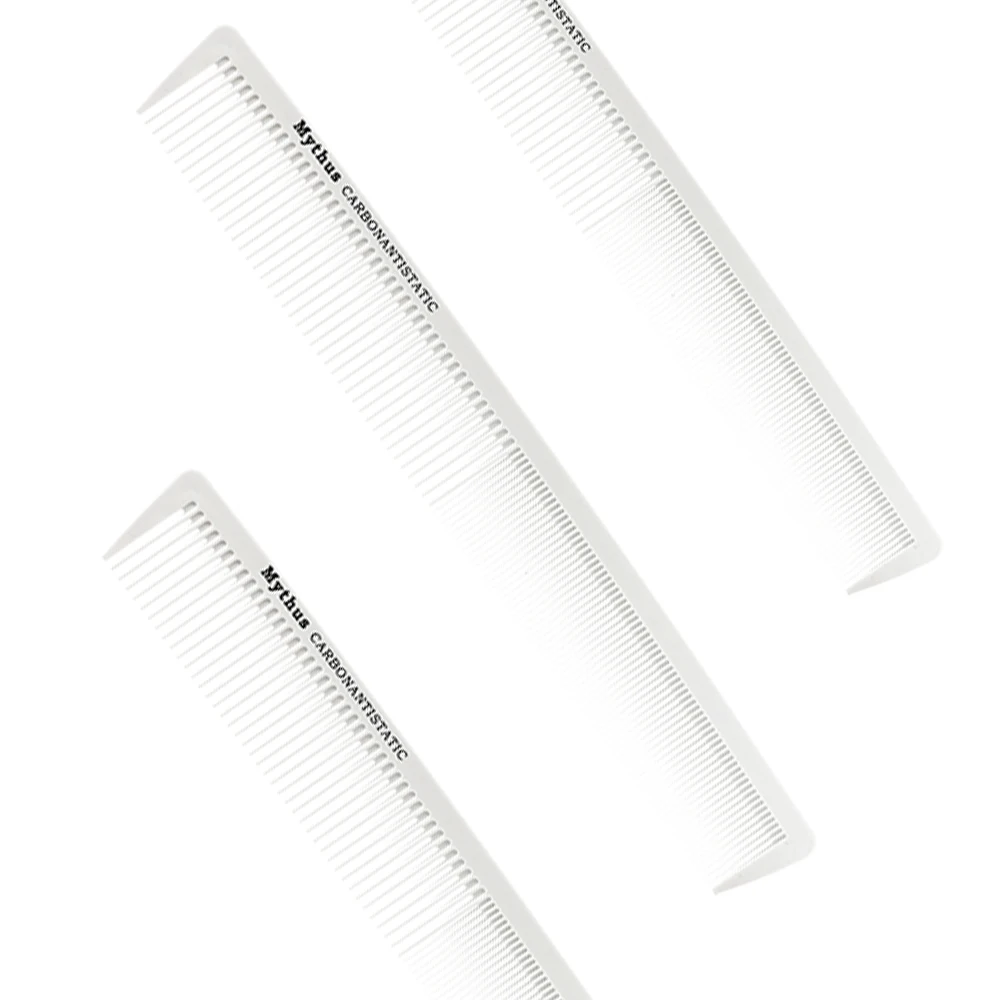 Белая Расческа для парикмахерских из углепластика Mythus профессиональная расческа для стрижки комбинированная термостойкая удлиненная расческа для парикмахерских волос