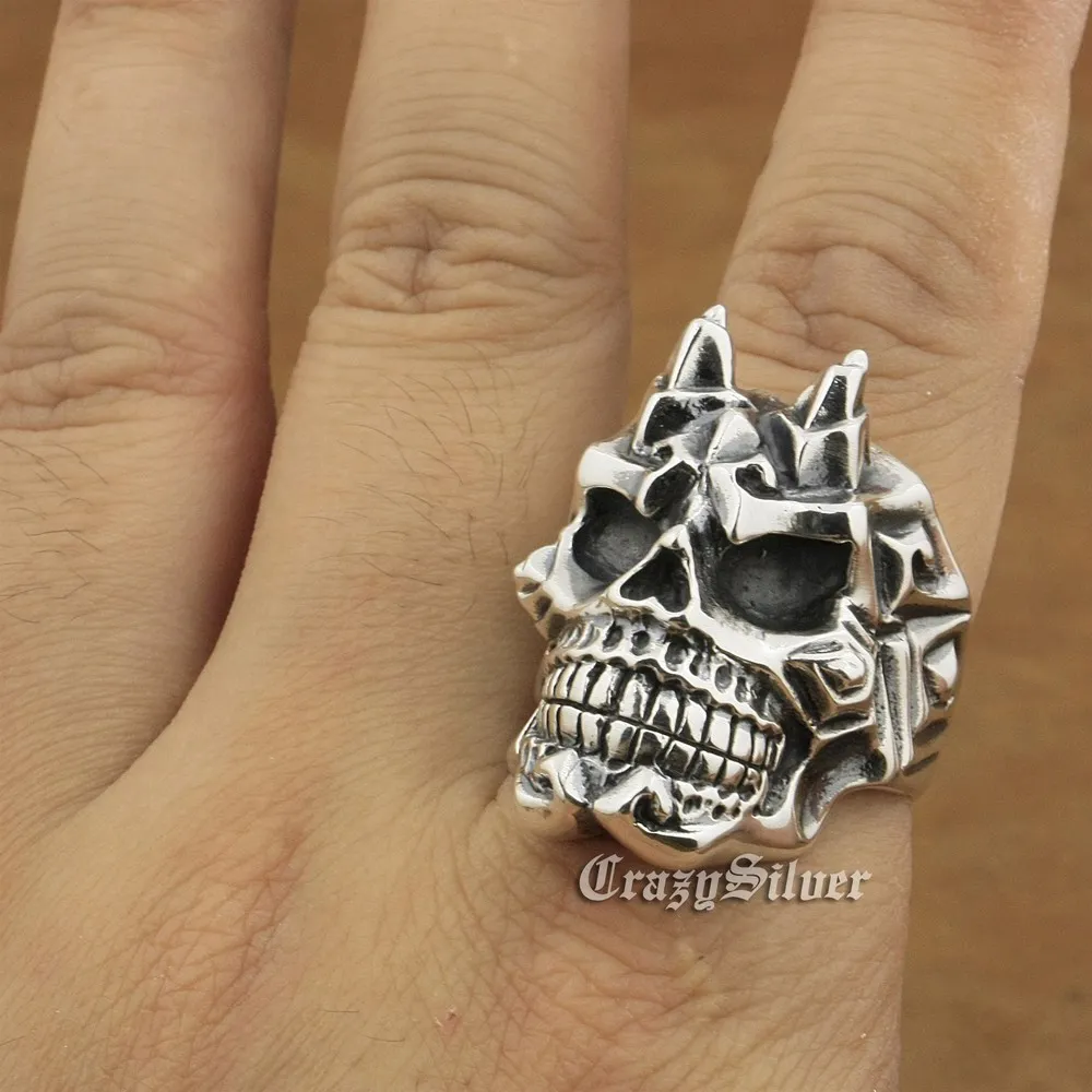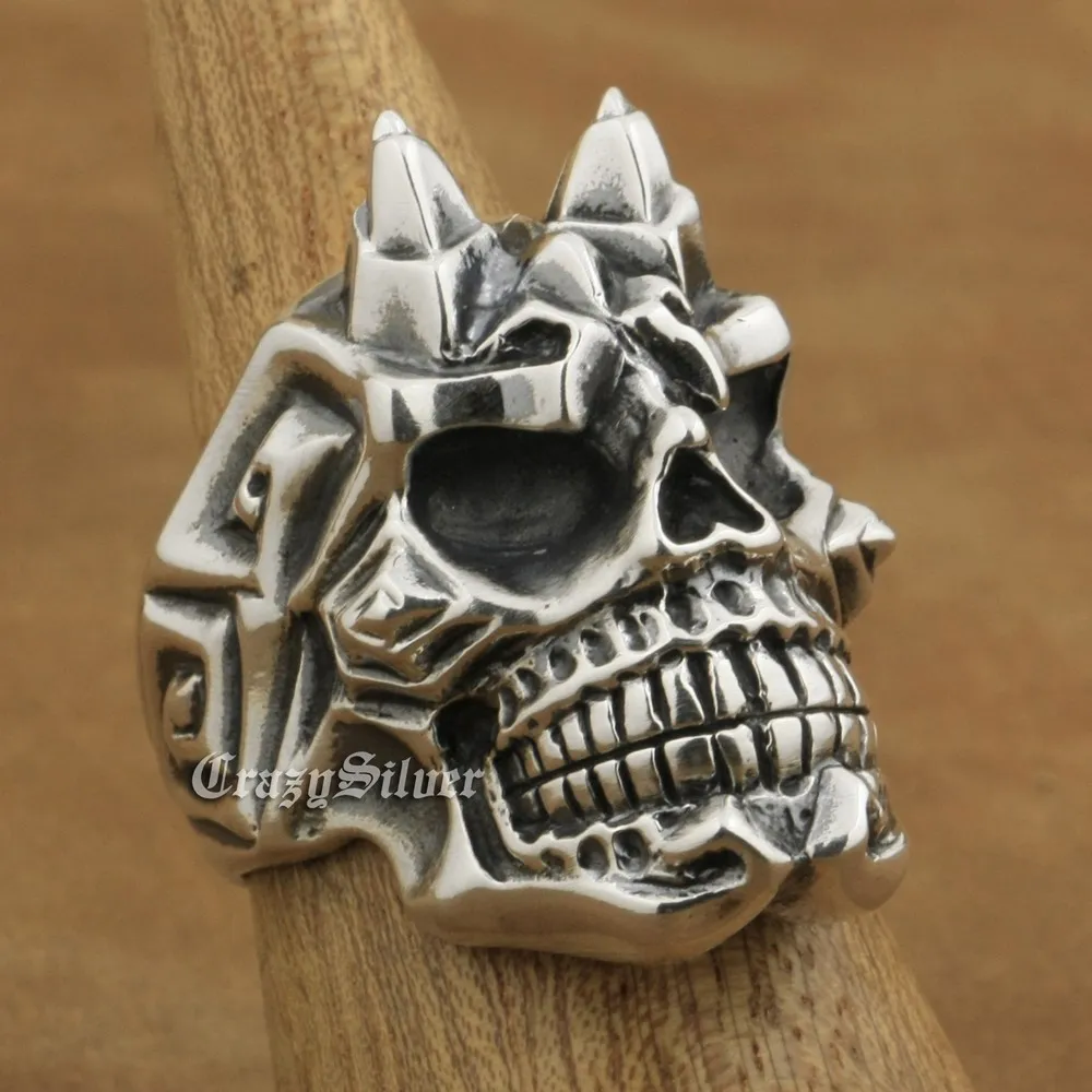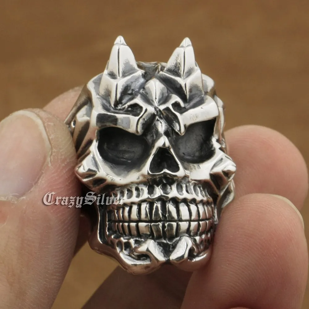 Мужское кольцо в стиле панк LINSION, байкерское кольцо с рогом дьявола и черепом, Размер 7-15, TA13