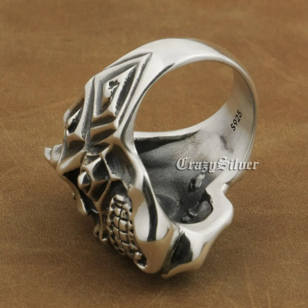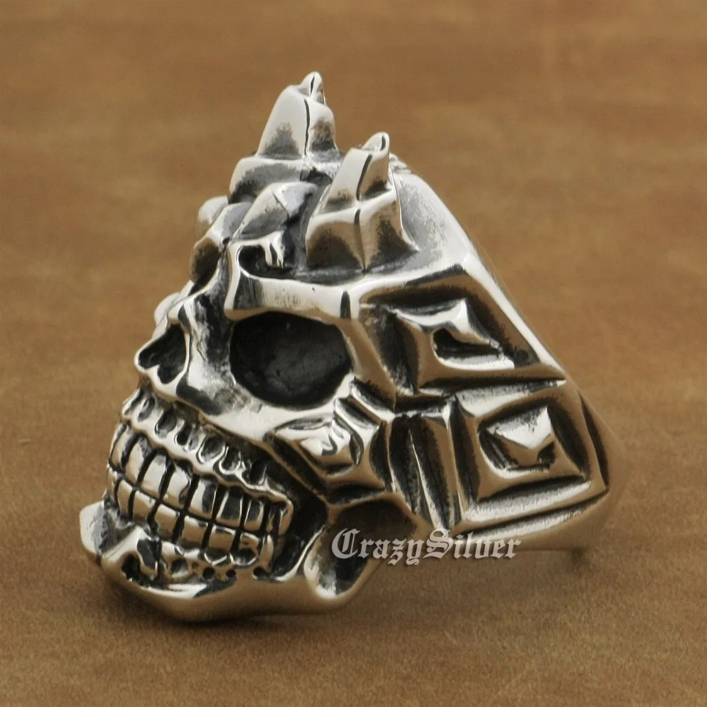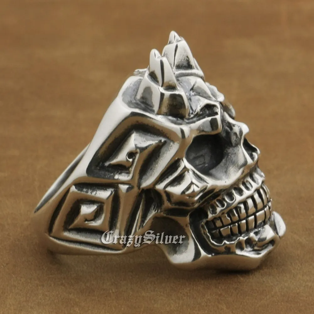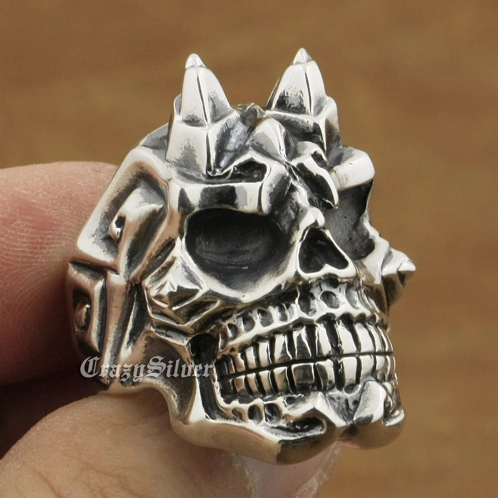 Мужское кольцо в стиле панк LINSION, байкерское кольцо с рогом дьявола и черепом, Размер 7-15, TA13