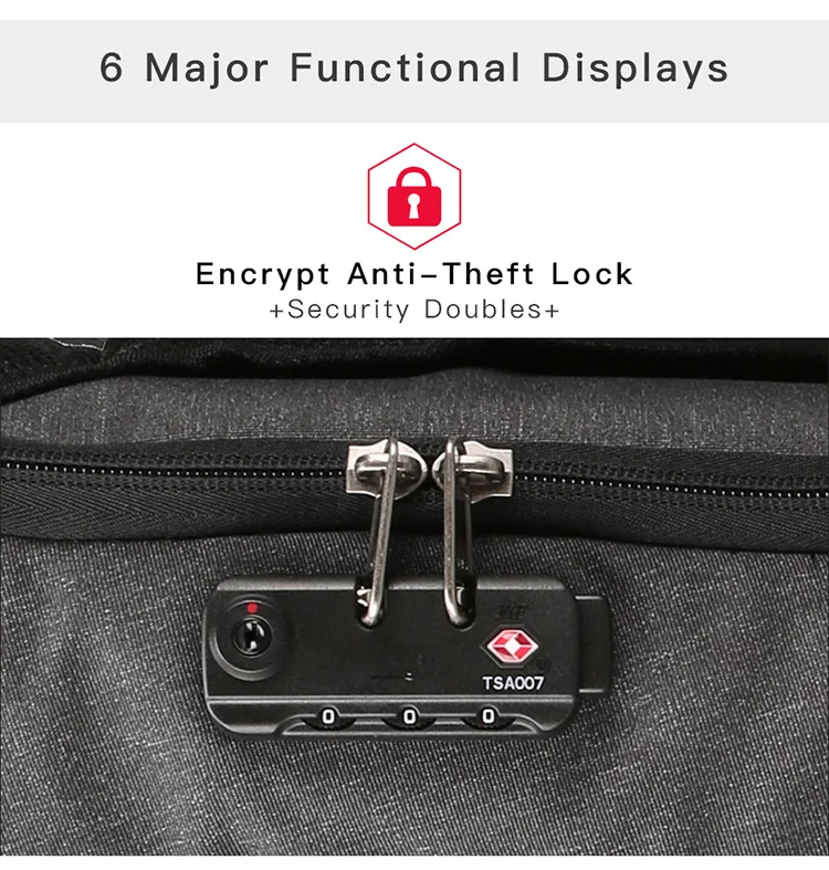 Рюкзак для ноутбука 15,6 дюйма с замком и USB-портом для зарядки