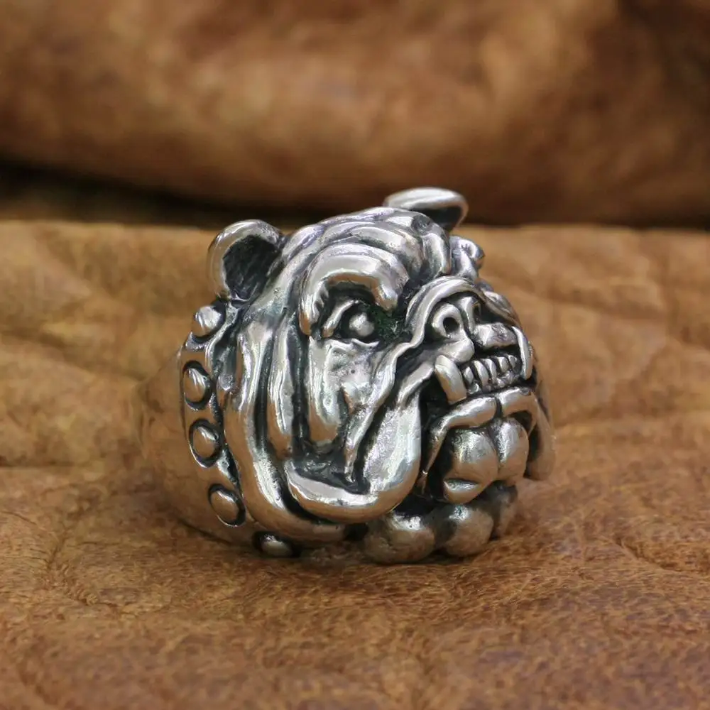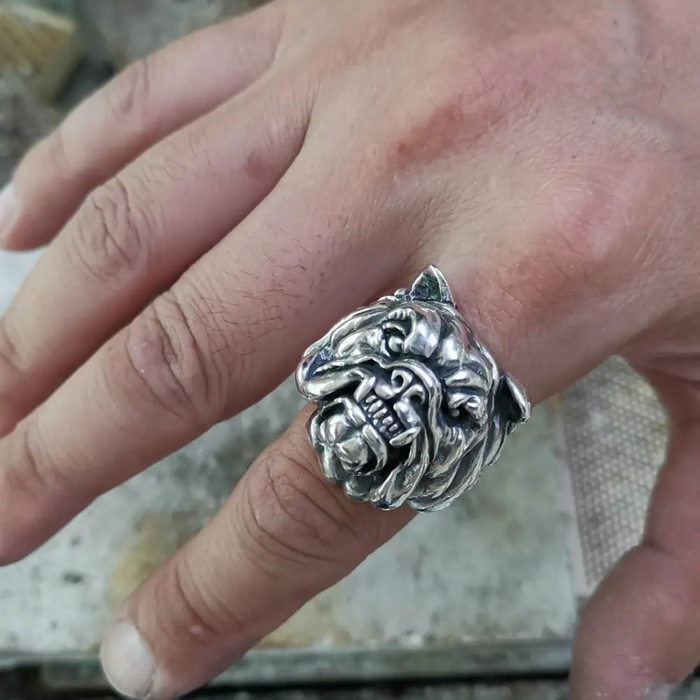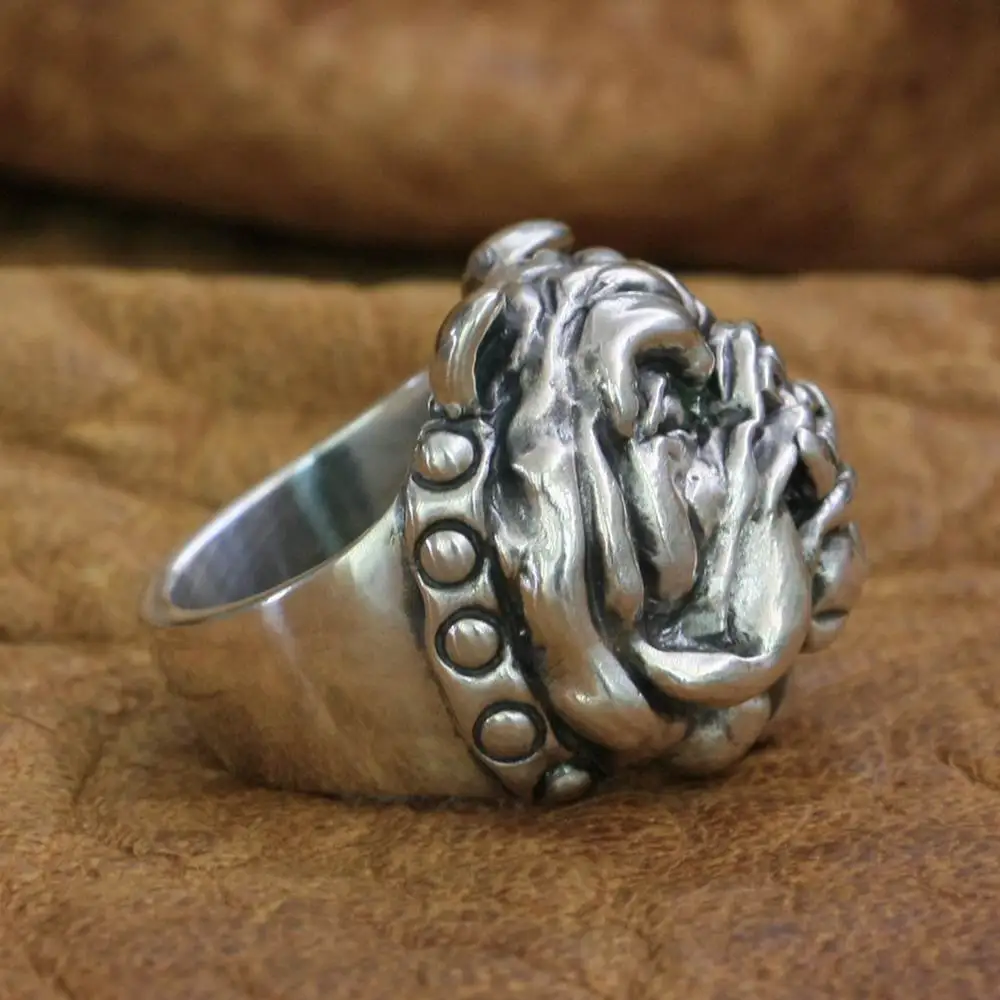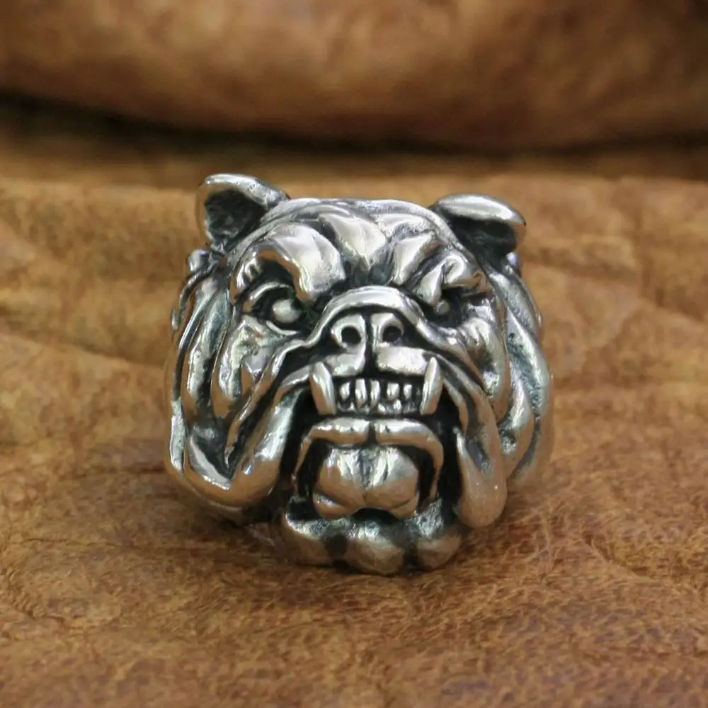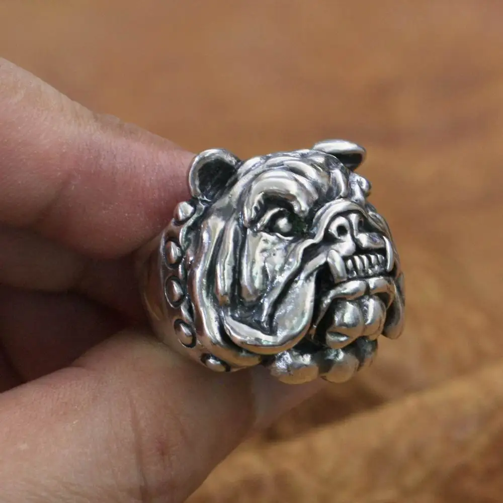 LINSION огромное тяжелое 925 пробы Серебряное питбуль бульдог кольцо для мужчин байкер рок панк кольцо TA12 Размер США 7 15