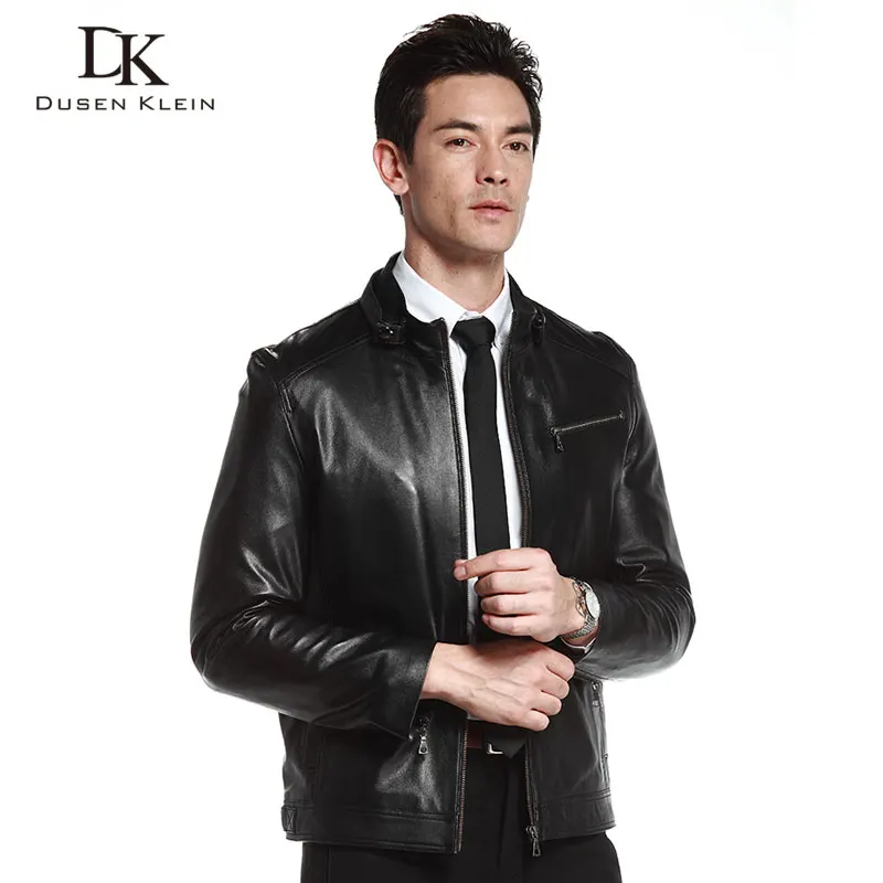 Мужская кожаная куртка Dusen Klein, черная приталенная куртка из натуральной овчины, DK108, 2017