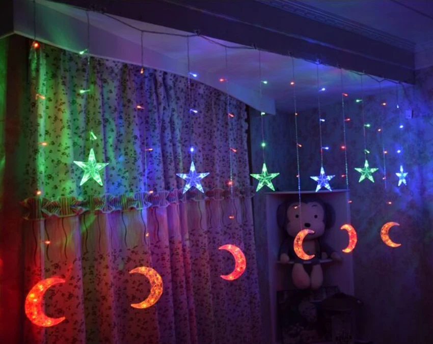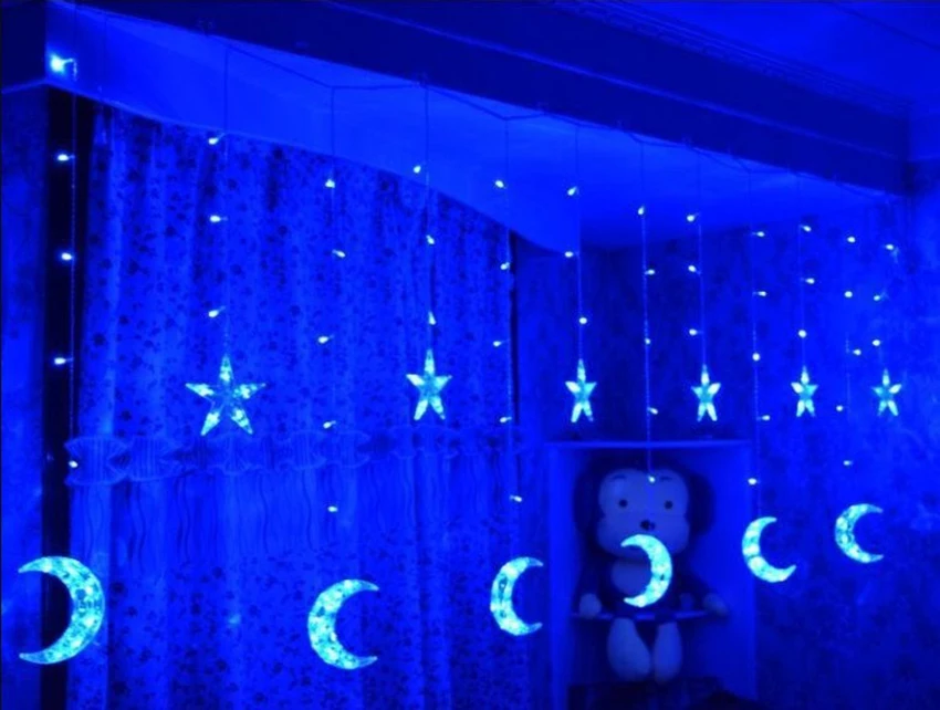 2,5 м с рисунком Луна, звезды СИД занавес Фея светильник s 138 светодиоды Рождество светильник, украшение для свадьбы, дома, сад вечерние уличные елка украшения