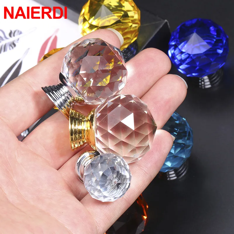 Ручки NAIERDI их стеклянного хрусталя, в форме бриллианта, ручки для шкафов и ящичков, выдвижных кухонных ящиков, дверные ручки, ручки для шкафов, фурнитура
