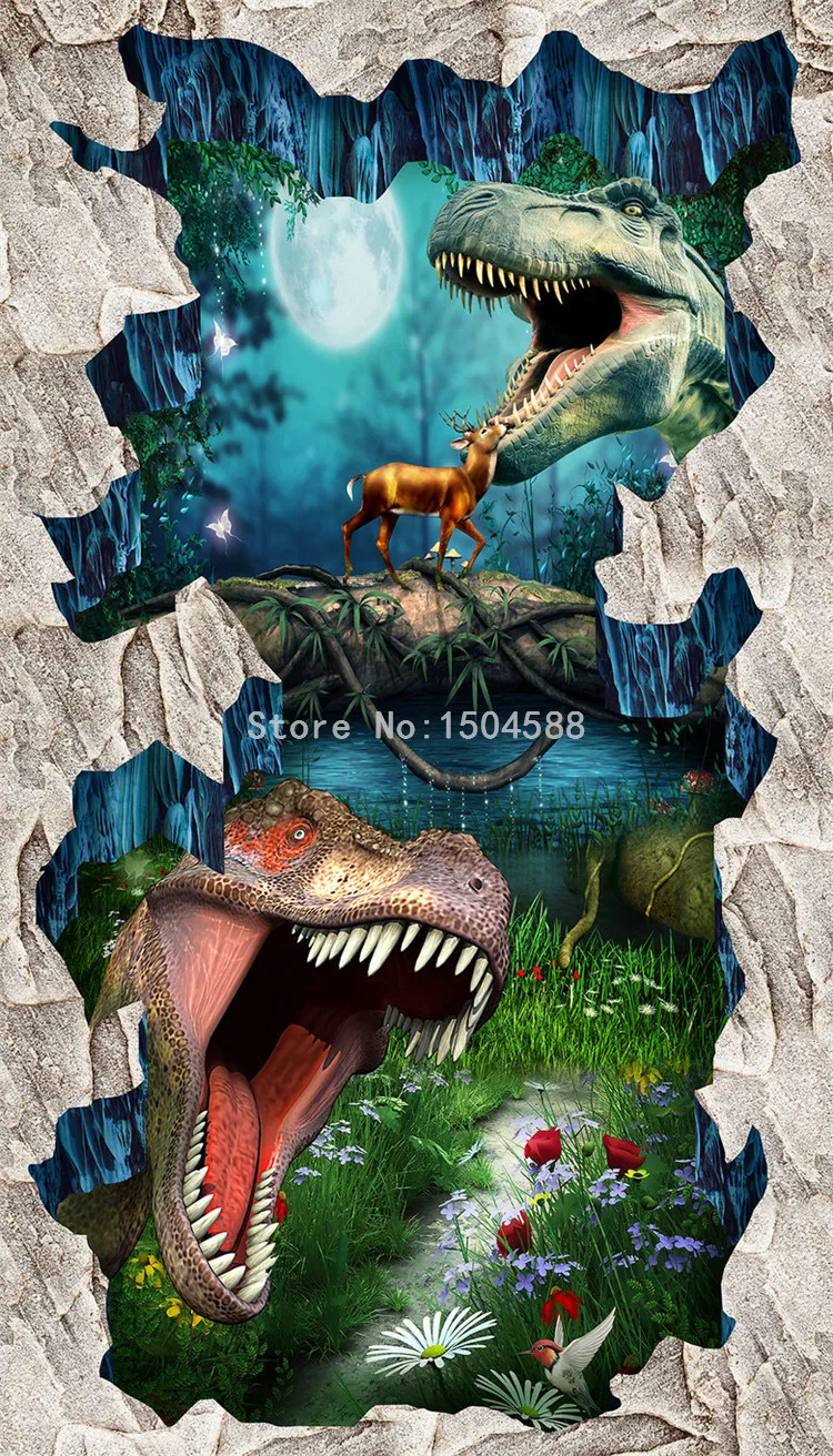 Пользовательские 3D стерео уличная напольная живопись примитивный динозавр фото настенные фрески обои носить Нескользящие водонепроницаемые 3D плитки для пола