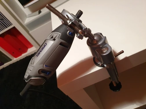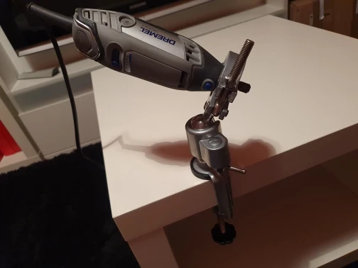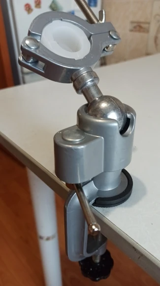 кронштейн изготовлен очень качественно, фиксируется на столе четко, шар зажимается в любом положении,большая машинка устанавливается в хомут и крепится крепко без люфтов. Приобретением доволен.