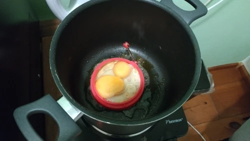 Отличная штука, яйца не вытекает, как из под металлических формочек