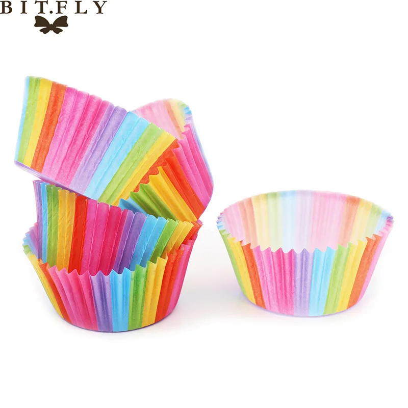BITFLY 100 шт. радужные искусственные подкладки, чехлы для маффинов, поднос для капкейков, Аксессуары для выпечки, украшения для кондитерских изделий, кухонные инструменты