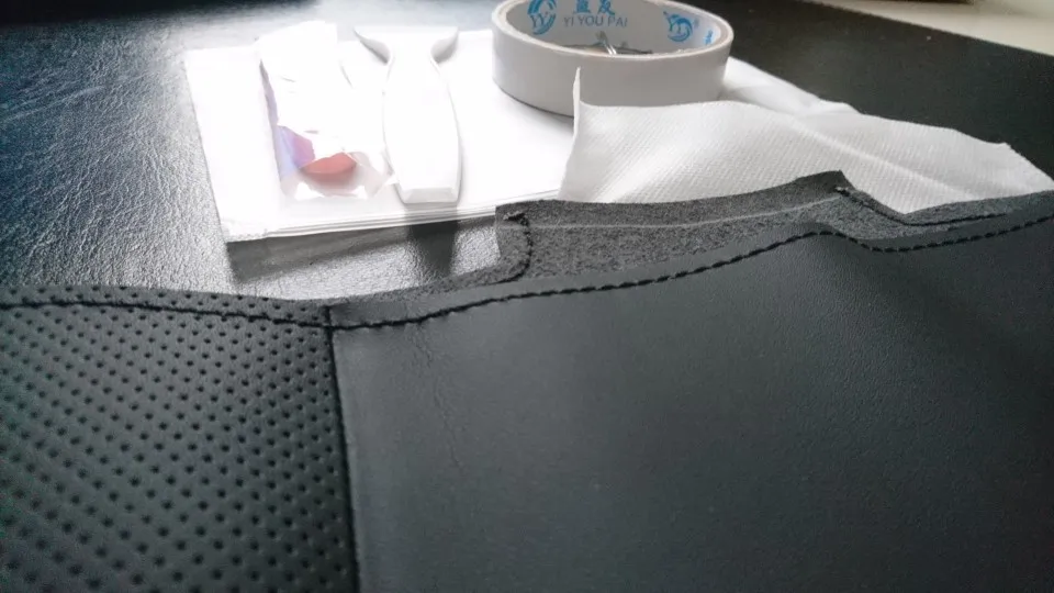 Шаг 1. Проверьте положение чехла и руля, а затем закрепите его двусторонним скотчем. Шаг 2. Поместите удлинитель чехла в шов рулевого колеса. Шаг 3. Начните шить. Видео установки: у нас есть видео с инструкцией по установке на «Youtube». Вы можете найти видео в поиске «O SHI CAR» на «Youtube»