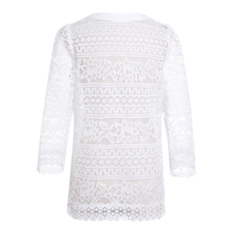 женские топы летняя женская блузка blusa Новинка 2019, большой размер, кардиган, черный, белый, вязаный крючком, Ультрамодная блузка с кружевными вставками, рубашка 3F