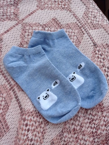Заказ пришёл очень быстро- меньше, чем за месяц. Выглядят очень маленькими, но на 39 размер налезают. Цвет красивый, картинка чёткая и милая, но её не очень хорошо видно на ноге, так как расположена слишком низко.