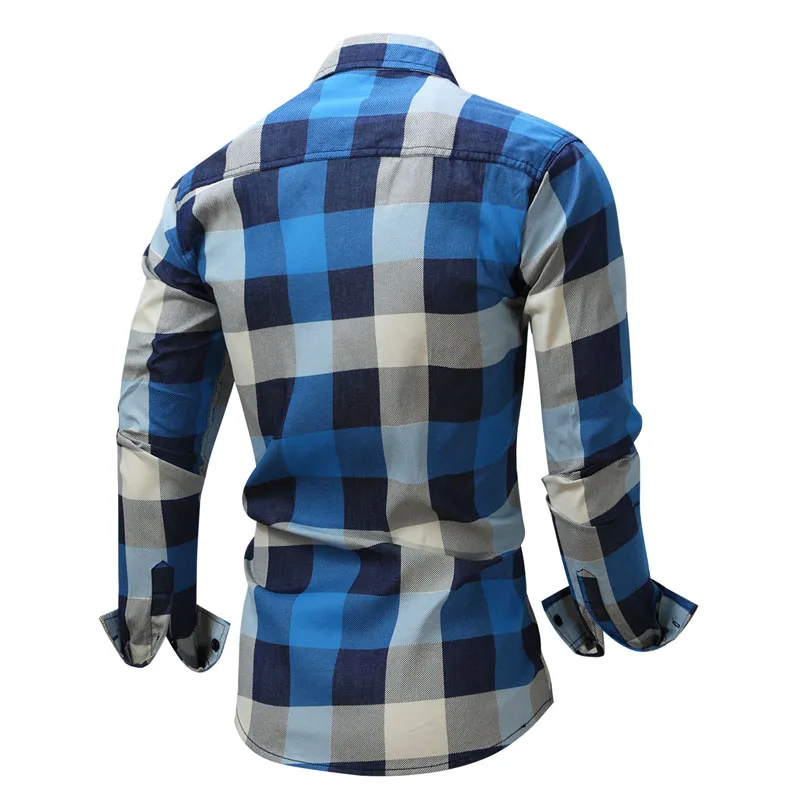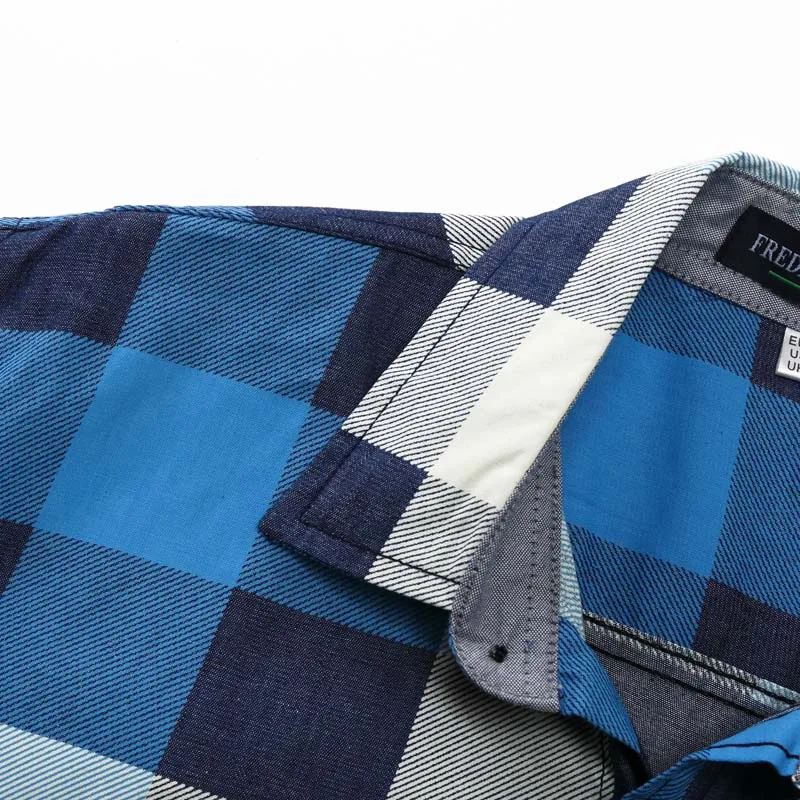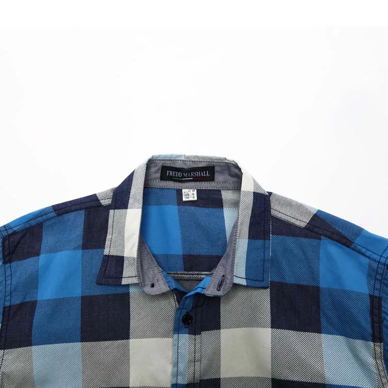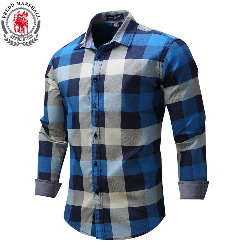 Fredd Marshall, мужские клетчатые рубашки, новая осенняя приталенная хлопковая рубашка с длинным рукавом, мужские Брендовые повседневные джинсовые стильные синие рубашки в клетку