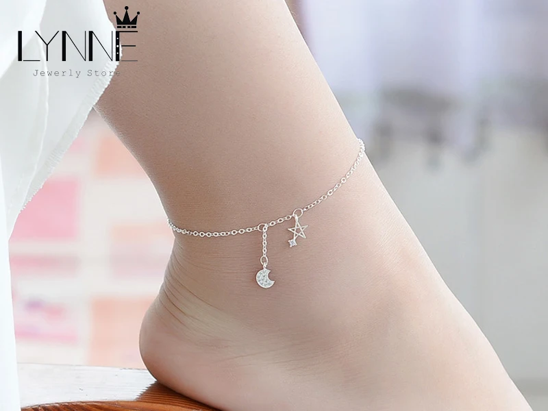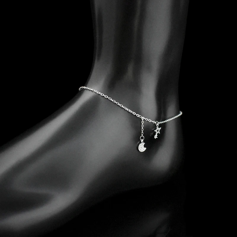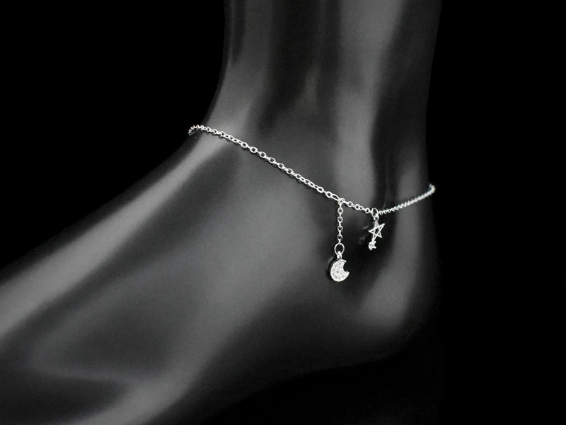 Женский ножной браслет из стерлингового серебра 925 пробы с подвеской в виде звезды и Луны из циркония, браслет на ногу с символом созвездия, подарочное Ювелирное Украшение для девушек и женщин
