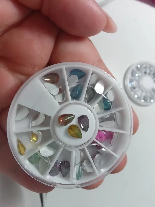 Son piedras justas de tamaño para una uña normal-pequeña, lo que es una ventaja para poder usarlas a tu gusto. Está muy bonito pero pensaba que llevaba más de colores y abundan las blancas.
