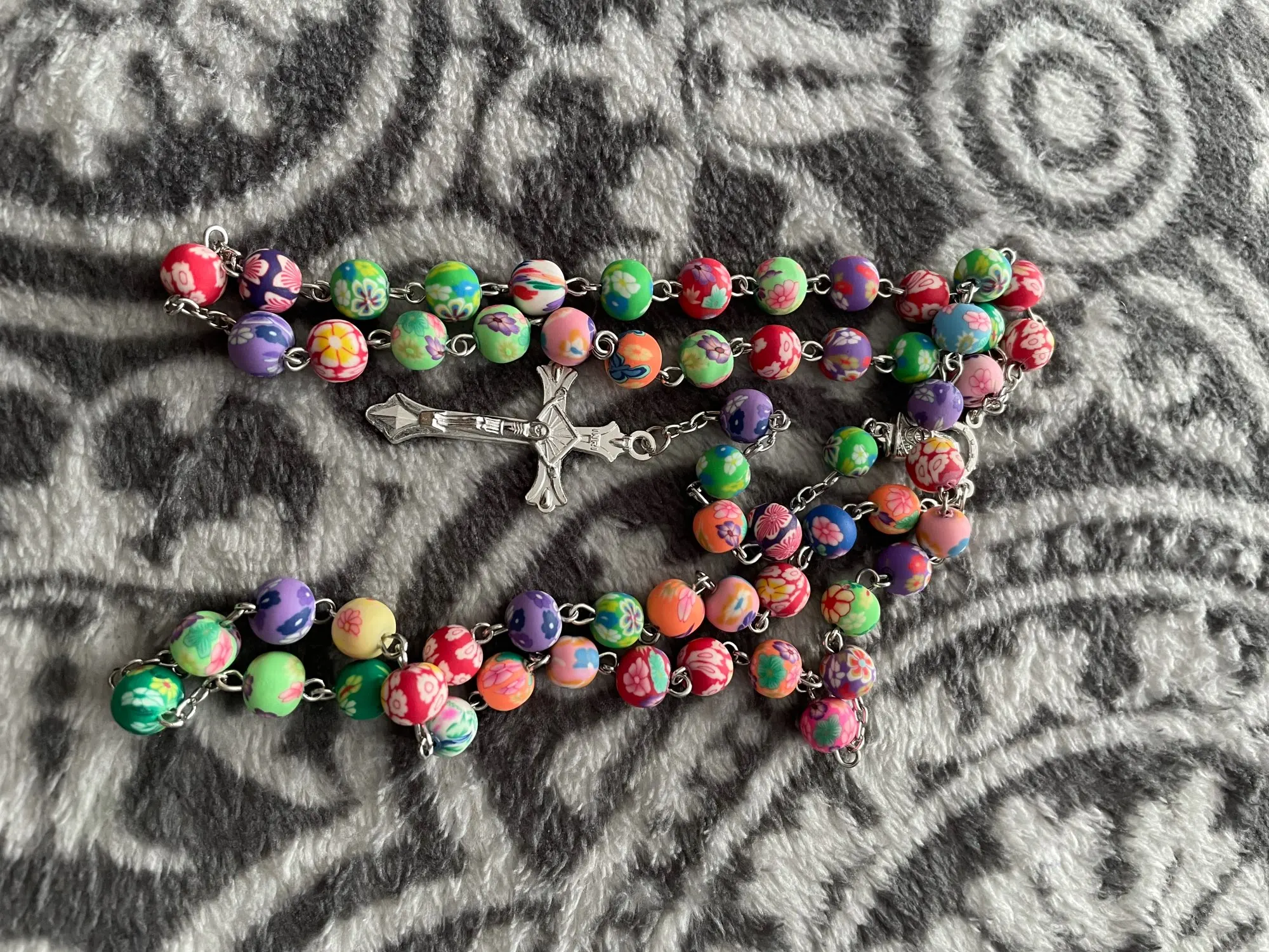 8 мм, цветная полимерная глина, четки, цепочка с подвеской из сплава, крест Девы Марии, христианские, костыли, религиозная бижутерия