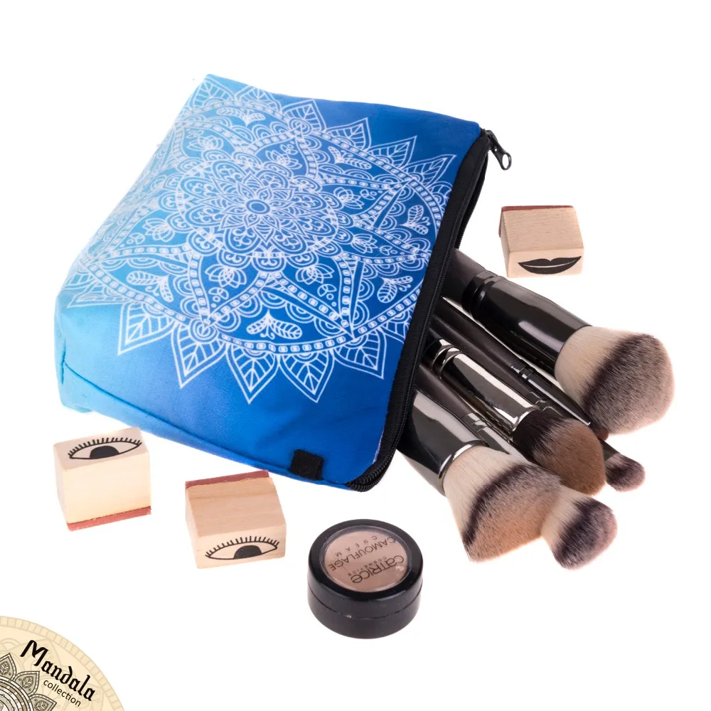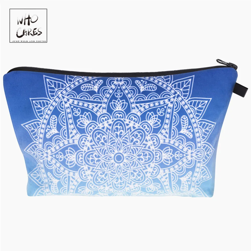 Синие косметички Who Cares с принтом мандалы Омбре, органайзер для косметики, дамская сумочка для путешествий, женская косметичка