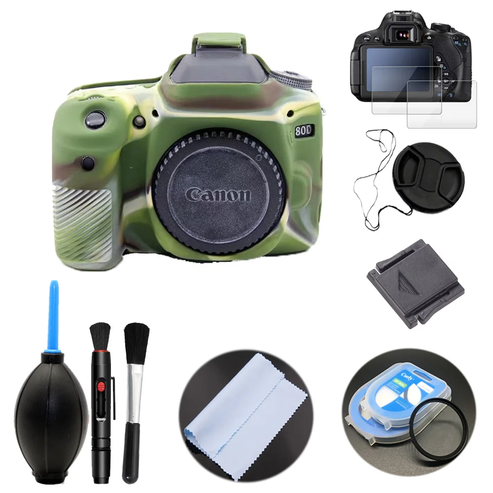 Защитный комплект закаленное стекло УФ-фильтр ручка воздуходувка Горячий башмак Чистящая Щетка ткань объектив силиконовый чехол для камеры чехол для Canon 80D