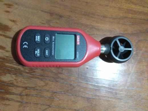 Сообщаю для заинтересованных в измерении малых скоростей: при слабом потоке он показывает скорость, кратную 0.4 м/с. То есть, сначала импеллер крутится, но на дисплее 0. Потом начинает перемигиваться 0 - 0.4, потом на дисплее 0.4, потом мигает 0.4 - 0.8, и так далее.Печаль.