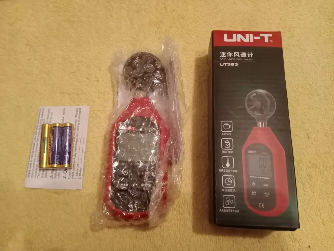 Сквозняк из окна не замеряет, мин значение 0,4. Спорный прибор. Доставка не быстрая. Батарейки и инструкция в комплекте. Инструкция на ненашенском.