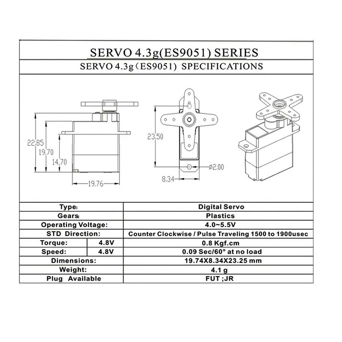 1 шт. EMAX 4,3g ES9051 цифровой сервопривод RC высокоэффективный большой