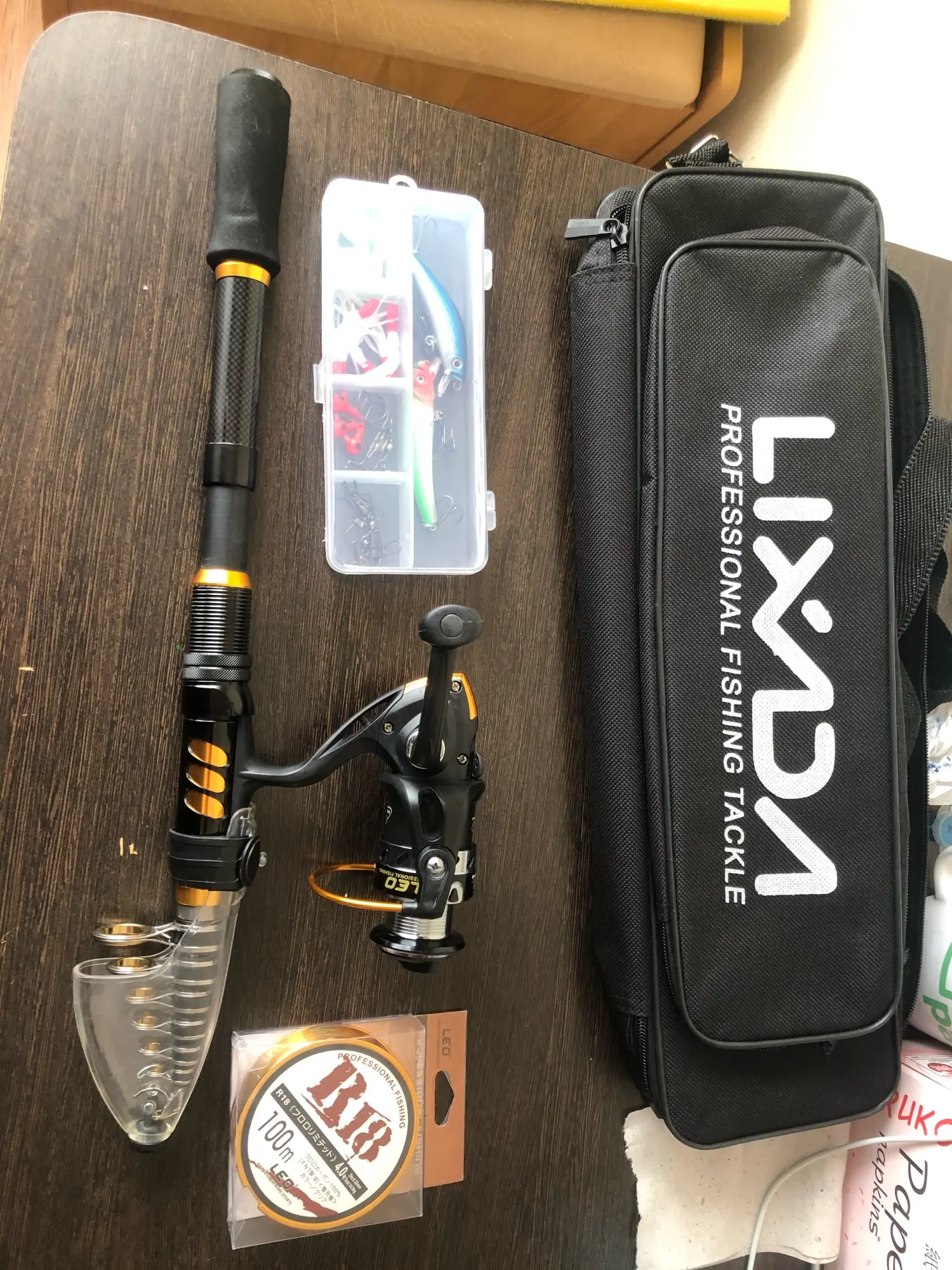Телескопическая удочка Lixada с катушкой, полный комплект, набор для спиннинговой рыболовной катушки, 100 м, леска, приманки, крючки, Мормышка